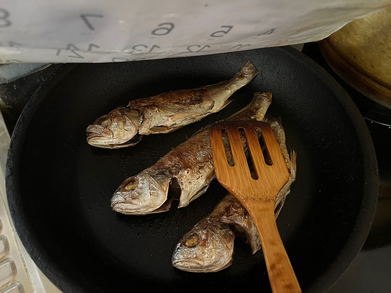 종이 덮개를 열면 생선 세 마리가 나란히 놓여있다. 식탐이 없어도 어릴 적 큰 병치레 하지 않고 자란 것은 밥상에 늦게 앉아도 언제나 각자의 몫을 따로 챙긴 어머니 덕분이었다.