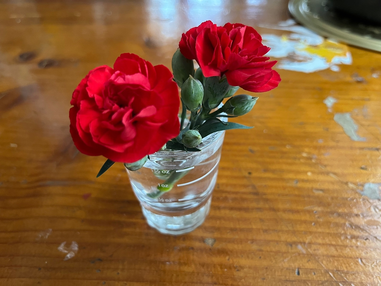 어머니는 화분에서 두 송이를 잘라 동생네 탁자에 얹어둔다. 소주잔처럼 보이는 작은 컵에 담긴 꽃이 멋스러워 찍었다.
