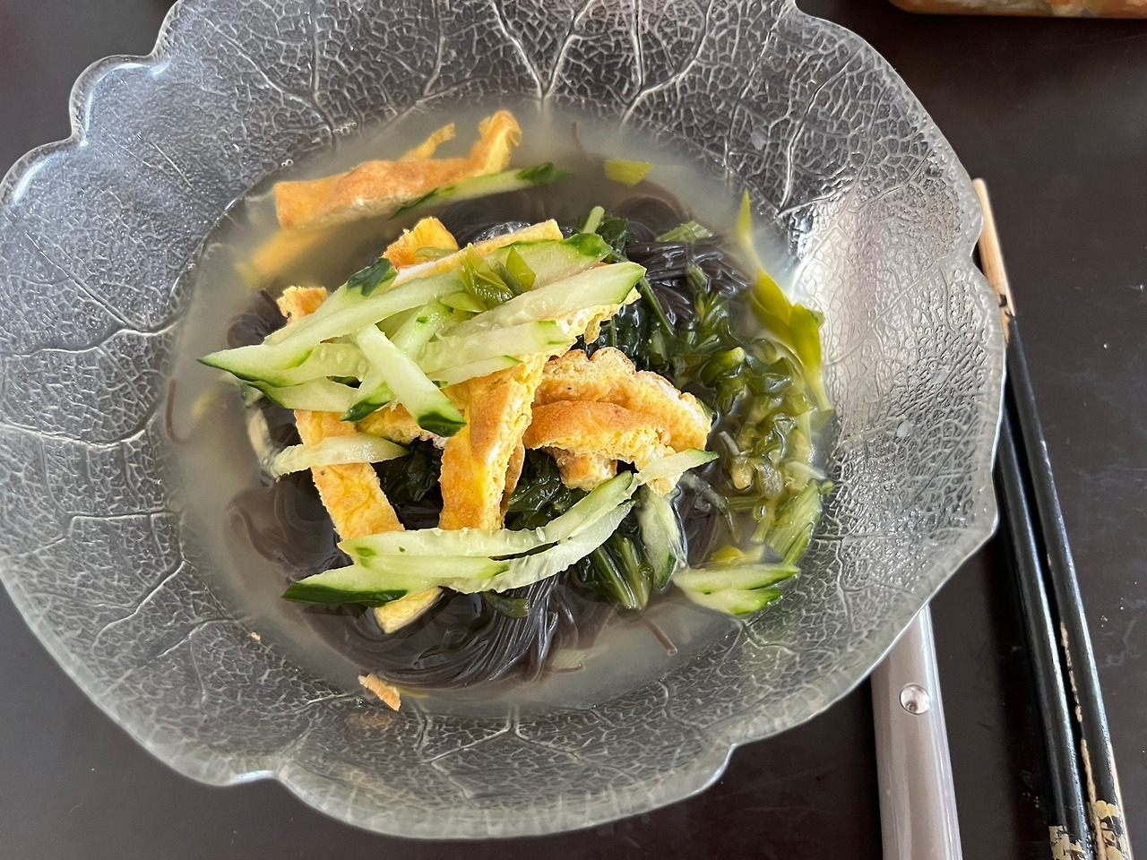 어김없이 교회에 다녀와 어머니가 해주신 점심상을 마주한다. 국물김치가 빨리 없어지지 않아 먹어치울 겸 메밀냉면의 육수로 쓰였다.