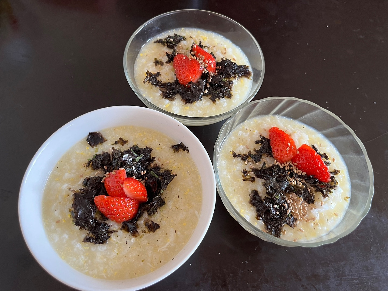 밥솥에 밥이 어중간하게 남으면 찬밥이 된다. 한 공기 정도가 딱 남는다. 동생과 조카들은 집밥을 꼬박꼬박 챙겨 먹는 스타일이 아니기 때문에 애매하게 남은 밥은 죽 재료로 쓰인다. 오늘 어머니는 '딸기 계란죽'을 만드셨다.