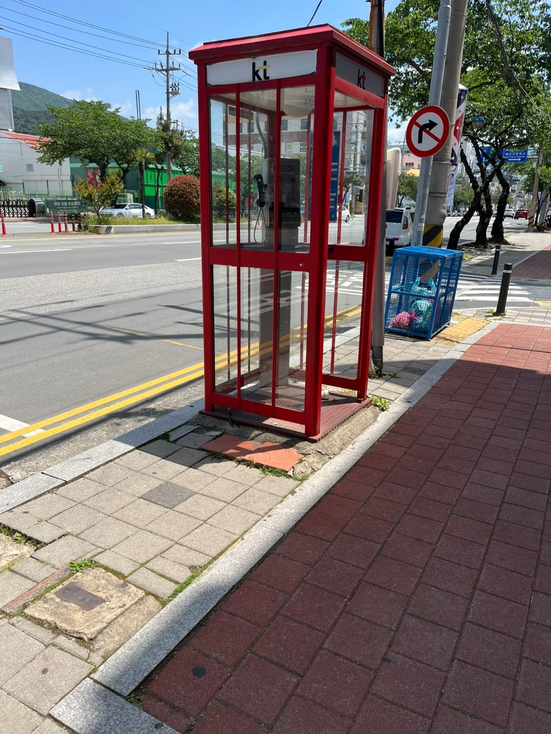 딸기가 연상되는 공중전화 부스. 청소년부 예배를 드리고 버스 정류장에 오니 눈길을 끈다. 예전에는 친구에게 공중전화에서 전화를 걸기도 했다. 동전을 들고 다니면서 언제 끊어질지 모르니까 용건만 간단히 하고 떨어지는 숫자를 보면서 급하게 말을 한 기억이 난다.