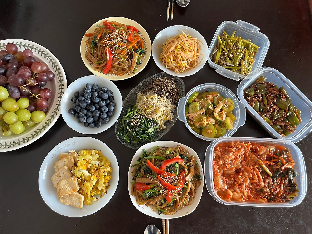 호르몬에 직접 영향을 줄 수 있는 유제품이나 콩류는 삼가야 한다. 그러니 콩나물 대신 숙주나물. 금양체질에 맞는 고사리와 잎채소로 담근 김치가 빠지지 않는다. 해산물인 새우와 강한 열을 발산하는 고추가 섞인 볶음. 각자 좋아하는 취향을 고루 반영한 결과다.
