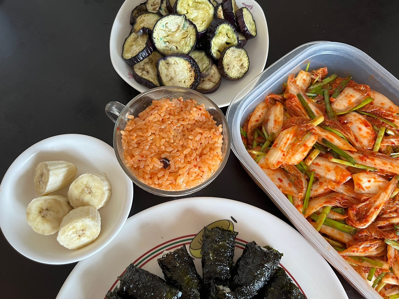 엉덩이 붙이고 느긋하게 쉬는 적이 거의 없는 어머니는 습관을 버리지 못하고, 도마 위에 가지를 올려두고 자르기 시작. 프라이팬에 열기가 오르면 잘라둔 가지를 넣고 굽는다. 가지구이이다. 소금을 한 꼬집 넣고 차례대로 뒤집어주면 끝! 이렇게 간편한 요리가 있구나, 목격한 딸은 감탄. 이 정도는 충분히 할 수 있지. 간단하고 몸에 좋은 반찬 한 가지 뚝딱 만들어진다. 사실 가지구이는 치아 교정 중인 첫째 손녀를 위한 그녀의 배려이다. 딱딱한 걸 씹기가 불편한 손녀를 위해 어머니는 지혜를 짜내어 음식을 준비한다.