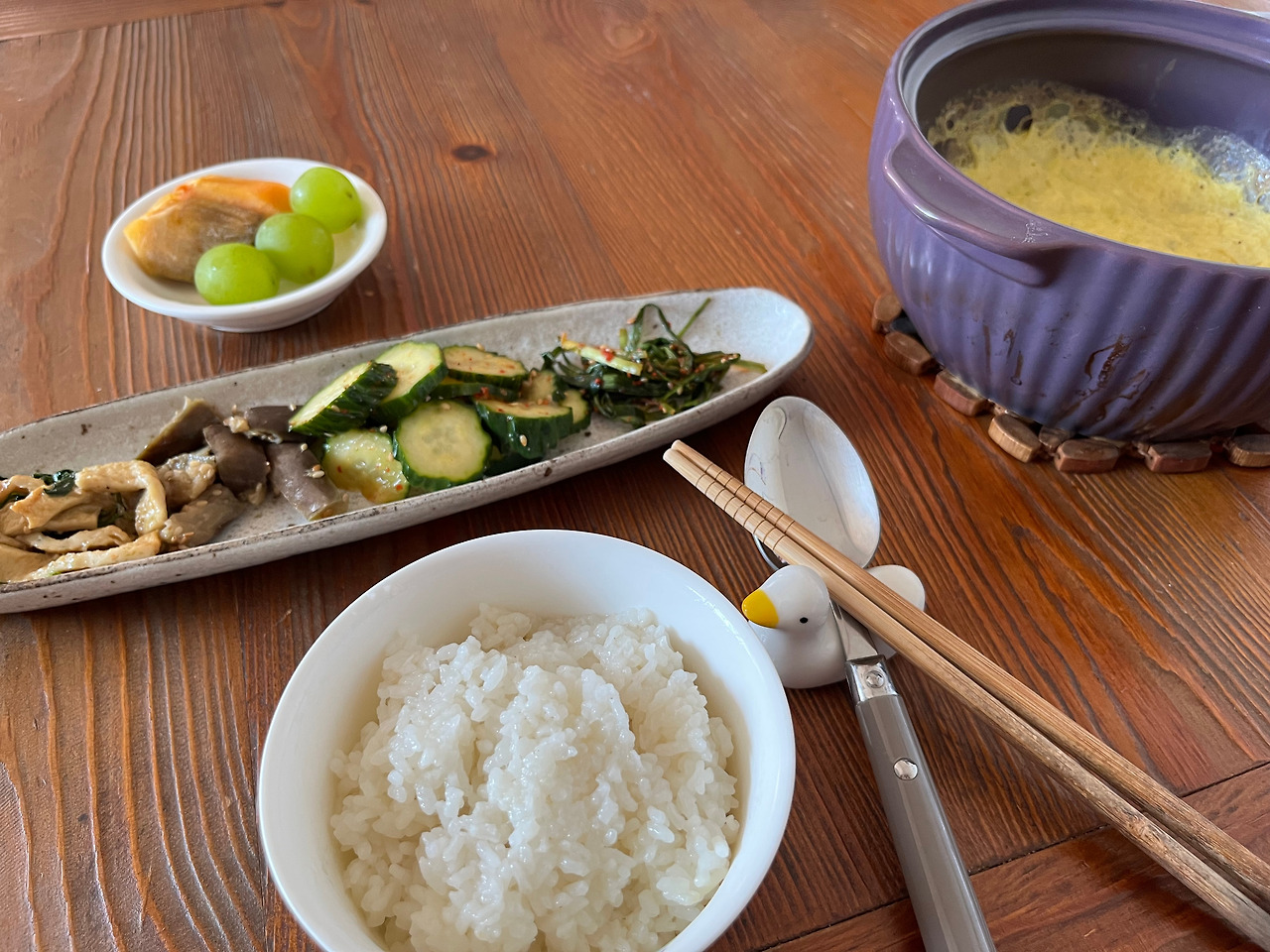 어묵볶음, 오이생채, 가지나물 3종 세트. 어젯밤 폭식 후 오늘 오전 몸무게는 1kg 증가. 역시 먹는 대로 찐다. 정직한 몸처럼 우리 가정의 재정 상태는 마이너스! 책도, 굿즈도, 문구류도 사서 안 되는 상황이건만 연휴 전후로 펀딩부터 노벨문학상 수상자의 대표작까지 아름아름 많이도 저질렀다.