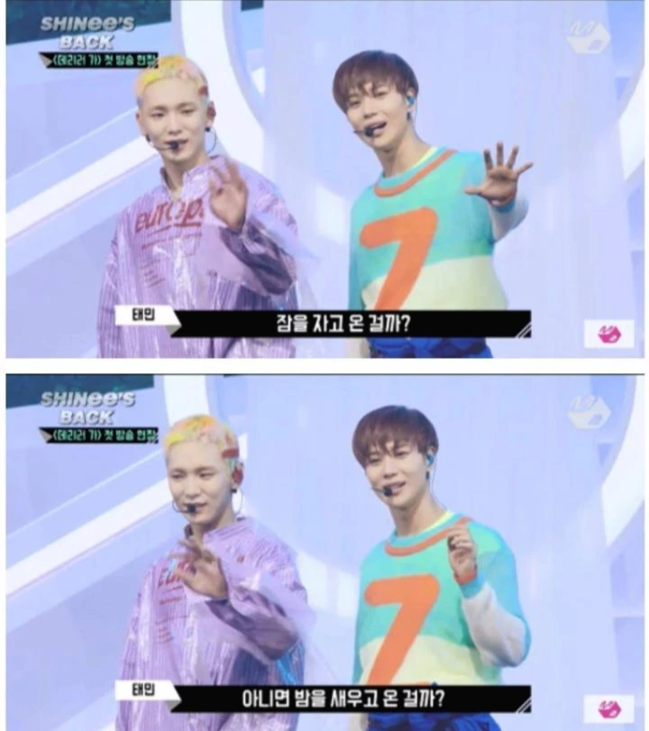 "밤샜지~"라고 키가 대답하자 태민은 다시 묻는다.