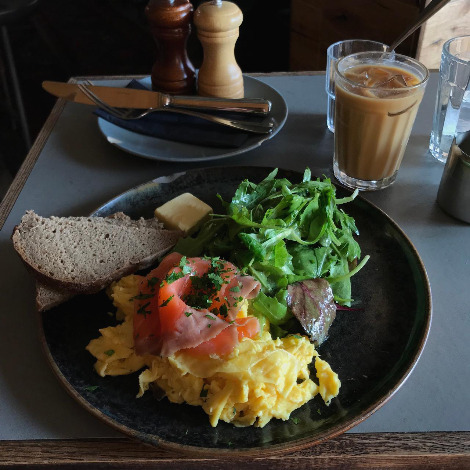 메뉴에 대해 구글링을 해보았기 때문에 잉글리쉬 브렉퍼스트가 추천메뉴인 걸 알고 있었지만 여긴 영국이 아니고 독일이잖아. 다른 메뉴를 먹어보기로 했다. 아르투에게 추천메뉴를 물었지만 그가 대답도 하기 전에 나 혼자 꽂혀 시킨 메뉴는 트러플 스크램블 에그. 트러플 버터와 오일을 더해 만든 스크램블에그에 훈제연어를 곁들여 먹는 메뉴다. 아아 말만 들어도 근사하다. 아이스 아메리카노도 함께 주문했는데 우유를 정말이지 딱 맞는 비율로 넣은 화이트 아메리카노를 가져다 주셨다. 음식은 5분도 채 안되어 나왔던 것 같다. 너무 빨라서 놀라는 나를 보고, 긴 금발 머리를 포니테일 스타일로 올려 묶은 스텝이 웃으며 키친이 오늘 좀 빨라, 한다. 하긴 스크램블 에그 만드는 건 빠르지. 막 만든 요리에서는 김이 모락모락 피어나고 있었다. 조금 잘라 맛을 보니 기막힌 트러플 향이 계란에 촉촉히 베어 부드럽게 입안에 퍼져 나갔다. 트러플도 훈제연어도 자기주장이 강한 향이라 함께 먹었을 때 궁합이 괜찮을지 의아했는데 두번째 입에 달걀과 연어를 함께 넣는 순간 도대체 왜 궁금해한거냐, 정말 맛있다고 밖에 표현할 수 없는 맛이었다. 첫 번째는 트러플을 입힌 계란만 한 입 먹어보고, 두 번째로는 훈제연어를 조금 잘라 함께 먹어보고 세 번째는 함께 나온 독일식 호밀빵에 샐러드와 계란, 연어를 한꺼번에 올려 먹어보자. 이렇게 간단하게 근사한 맛의 조화를 느낄 수 있구나 싶을 것이다. 내게는 사실 유럽에서 먹은 음식 중에 가장 맛있는 유럽 음식이었고 이제껏 먹은 브런치 메뉴중에도 단연 베스트였다. 친구네 레스토랑이라서가 아니라 너무 맛있어서 친구를 더 존경하게 되었다. 이런 요리를 파는 곳의 주인이었다니. 상상이 안 간다면 꼭 집에서 한 번 만들어보길. 집에 트러플 오일과 훈제연어만 있다면 손쉽게 만들 수 있을 것 같다. 화사가 트러플 짜파게티 먹는 거 본 사람이면 집에 트러플 오일 하나씩은 있잖아.