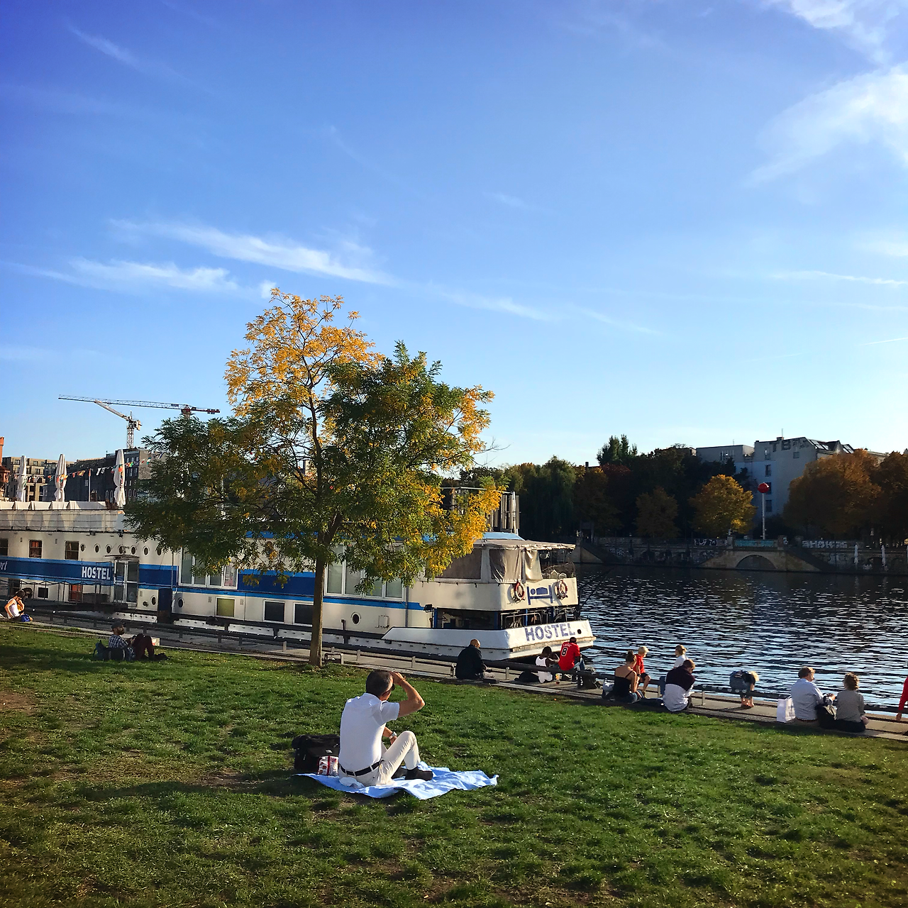 걷다가 강가에서 잠시 쉬었을 때 커다란 개 한마리와 함께 버스킹 하는 사내가 있었는데, 그가 The Rumineers의 Ho hey를 불러주어 기분이 좋았다. 그 때 라임(요즘 많이 보이는 전동 퀵보드로 공공자전거처럼 빌려서 쓴다.)을 탄 한 무리의 한국 젊은이들이 내 근처에 멈추어 서서 함께 버스킹을 구경하기도 하고 강가에 앉아 멍때리기도 하고 한다. 특이한 점은 그들이 모두 머리부터 발끝까지 완벽한 패션을 하고 있었다는 것, 블랙으로 드레스 코드를 맞추어 입고 있었다는 것, 주변에 마이크와 카메라를 든 사람들이 그들을 촬영하고 있었다는 것이었다. 그들 중 몇 명이 정말 나와 가까운 거리에서 함께 버스킹을 관람했기 때문에 그들을 찍던 카메라에 내가 나왔을 지도 모르겠다. 어쩌면 그들은 한국에서 온 아이돌 그룹일지도 모르겠다는 생각이 든다. 혹시 누군가 이걸 읽고 있다면, 베를린처럼 보이는 강변에서 자신의 아이돌이 화보 촬영을 했다거나 한다면 제게 좀 알려주시라. 난 지금까지도 그들의 정체가 궁금하다.