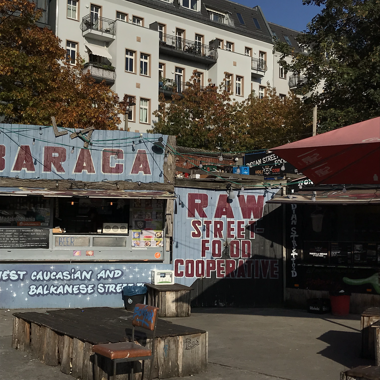 날이 너무 좋다. 가는 길에 나오는 작은 공원들 하나도 그냥 지나치고 싶지 않은 날씨다. 나오는 벤치마다 앉아서 해를 받고 싶어지는 그런 날씨. 슬슬 걸었는데도 15분도 안되어 컬쳐센터에 도착했다. RAW는 1967년 세워진 동베를린의 기차 수리소가 1999년 문을 닫고 버려진 건물이 되자 젊은 예술가들이 모여 그래피티를 겨루는 공간이었다가, 점차 서브컬쳐의 중심지로 발전하며 각종 문화시설이 들어와 지금의 모습이 되었다. 현재는 수영장, 클라이밍 짐, 카페, 바, 클럽등이 들어와 있고 디자이너의 편집숍이나 가구 공방 등 베를린의 젊은 정취를 한껏 느낄 수 있는 공간이 속속 생겨났다. 요즘에는 마약을 파는 사람이 많아 조심해야 한다는 글을 읽고 약간 긴장하며 갔는데 웬걸, 대부분의 가게가 문을 굳게 내걸고 오직 클라이밍 센터만 분주히 돌아가고 있다. 아마 일요일에 문을 열고 월요일에 닫는 것인지 조용하다 못해 적막했다. 여기저기 들어가보고 야외 테라스에서 맥주도 한 잔 하고 싶었는데. 거대한 벽이 정신없는 그래피티로 가득 채워진 게 진짜 베를린에 온 기분이 들어서 마음이 조금 설레었지만 주변은 그와 대조되게 너무 썰렁했다. 사진 한 장 찍어달랄 사람도 없어서 오늘은 날이 아닌가 보다, 하면서 다시 20분을 슬렁슬렁 걸어 이스트 사이드 갤러리에 도착했다.