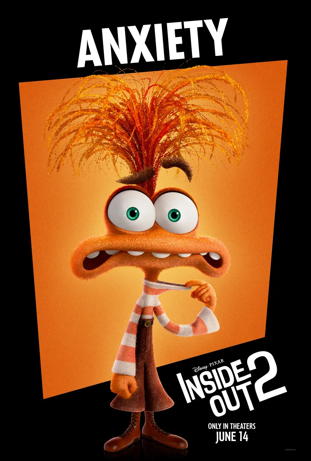 영화에서 불안이는 엄청난 에너지를 가진 감정이다. 추진력이 강하고 자신의 존재감을 확실히 드러내고 싶어 하는 캐릭터였다. 후반부에 불안이가 공황상태에 빠졌을 때 엄청난 에너지를 분출하며 방어막을 만드는 모습을 볼 수 있다. 이런 점에서 보았을 때 에너지의 확장을 담고 있는 주황색은 불안이를 표현하기에 적합하다. 그리고 당황이나 부러움 같은 다소 소극적인 성격들과는 다르게 굉장한 존재감을 나타내는 불안이는 자연스레 뿜어지는 에너지로 주변의 감정들을 통제하고 리드하는 역할을 한다. 그리고 라일리가 사춘기라는 변화를 겪으며 가장 강하게 나타나는 감정이기에 주황색은 불안이라는 캐릭터를 그대로 담아내기에 적절한 색상임을 알 수 있었다. 왠지 불안이가 히스테리컬하고 키치한 예술가의 느낌이라고 느껴진 것에도 주황색의 역할이 큰 듯 싶다.