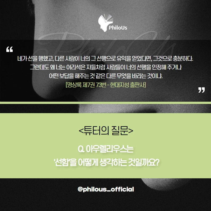 챌린지 3일 차이다. 오늘의 질문은 아우렐리우스는 ‘선함’을 어떻게 생각하는 것인가이다.