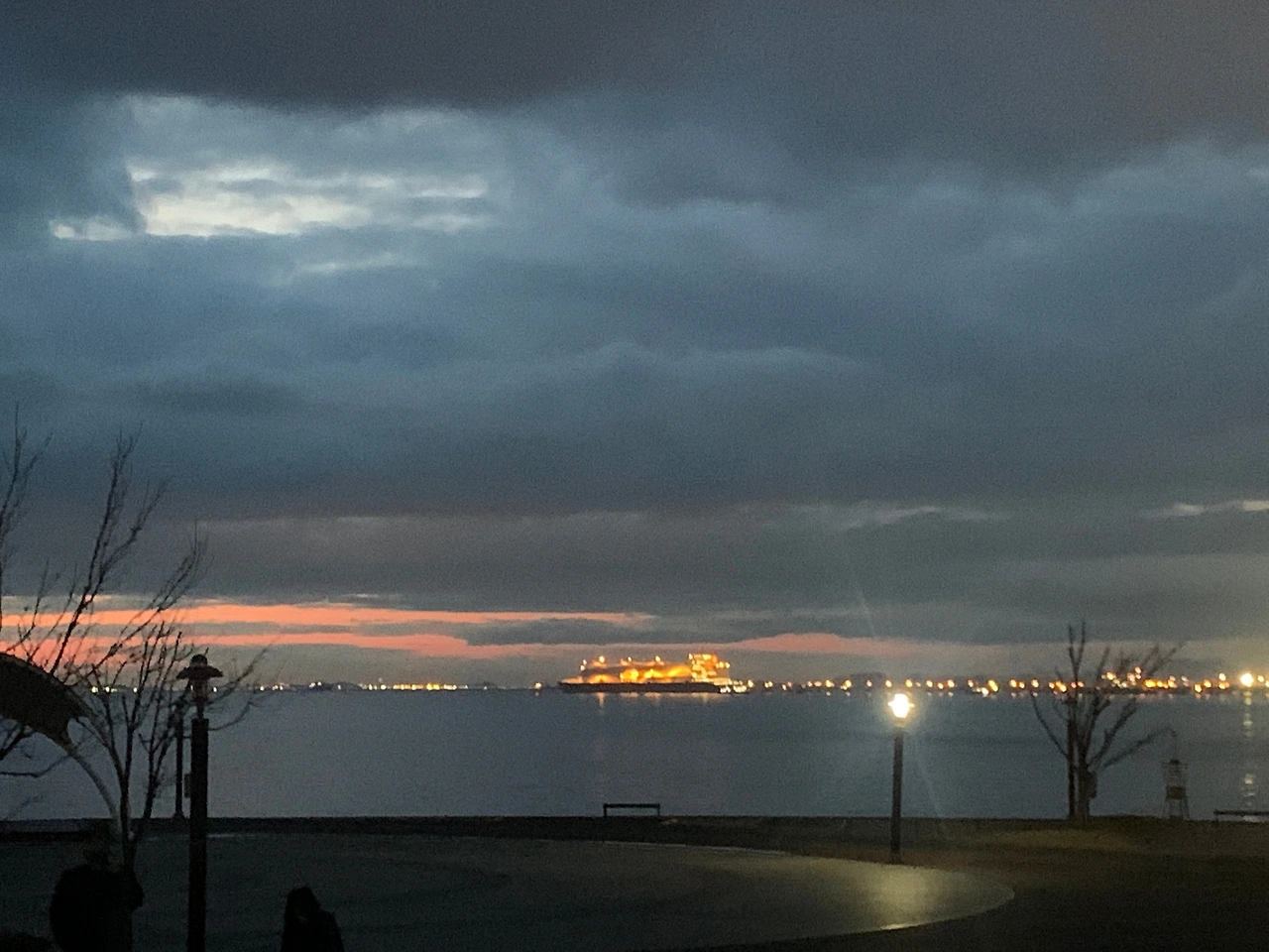 시화나래 휴게소에 도착했다. 생각보다 사람들이 꽤 있었다. 주차장에 차를 세우고 내리니 차박을 하고 있는 사람들이 보였다. 바닷가 바로 앞이고 산책로도 잘 되어있다 보니 차박을 하러 오는 사람들이 많은 것 같았다. 공원에는 불이 반짝반짝 들어오는 킥보드를 타는 아이들과 옹기종기 산책하는 사람들이 보였다. 나도 다시 바다가 보이는 자리로 차를 가져와 주차했다. 아무 생각 없이 물 멍을 때리기 참 좋은 곳이었다.