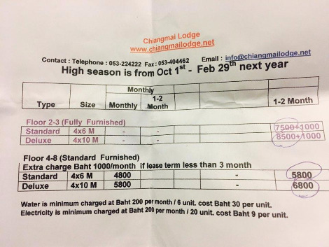 여러 군데 롯지와 레지던스, 호텔을 실지로 방문해보니 사람들이 포스팅한 정보와 가격차이가 많았다. 3, 4년전에 비해 방값이 거의 2배 가까이 올랐다고 보면 될거 같다. 2013년에 방 하나에 6천밧쯤 했다면, 지금은 1만밧이나 1만 2천밧까지 줘야한다. 물론 5천~7천밧 사이의 방들도 있는데 대개는 그정도의 값어치를 했다. 즉 건물이 낡았건, 방이 너무 낡았다. 결국 좋은 숙소를 구하려면 그만큼 돈을 줘야한다는 이야기다.