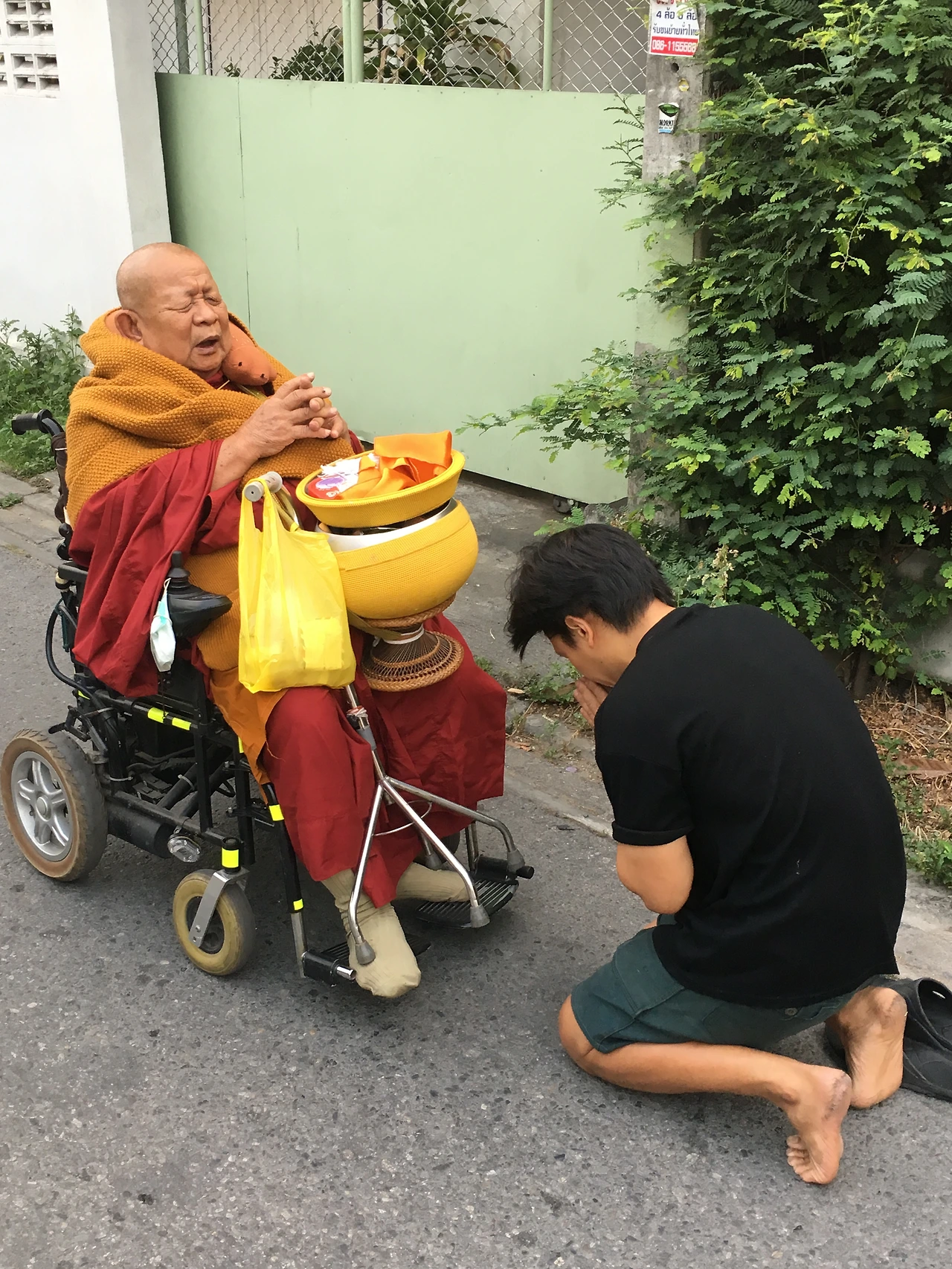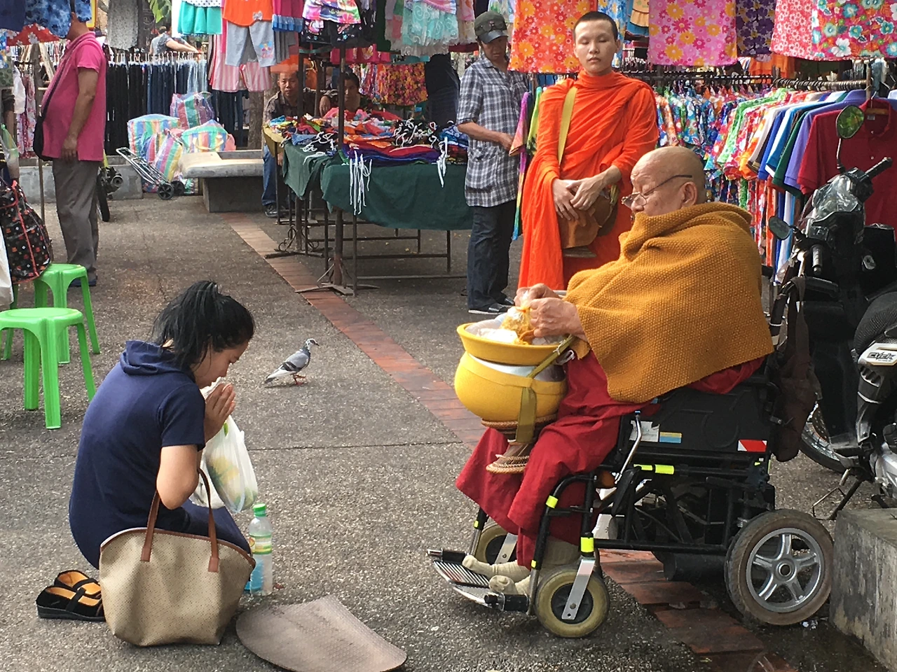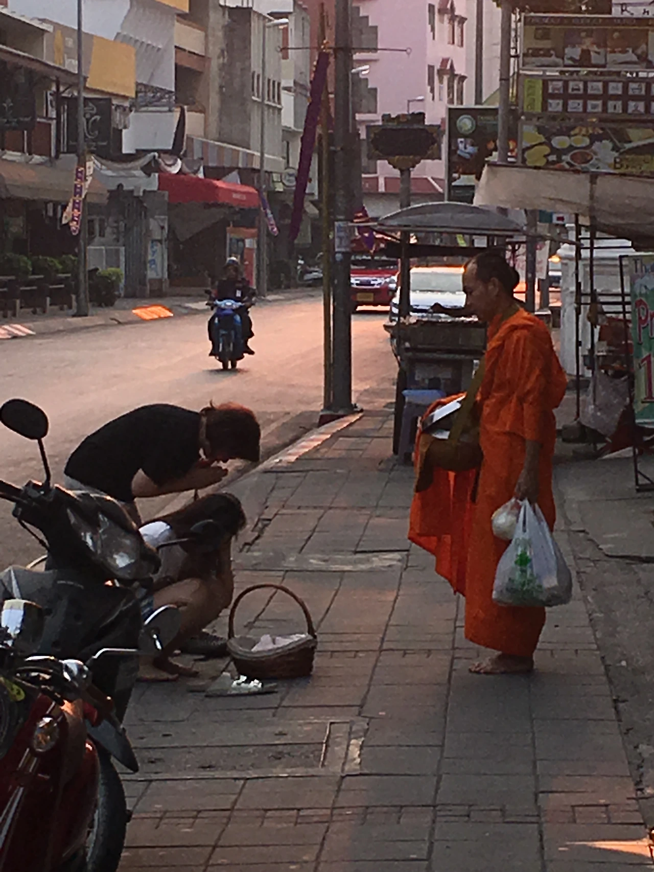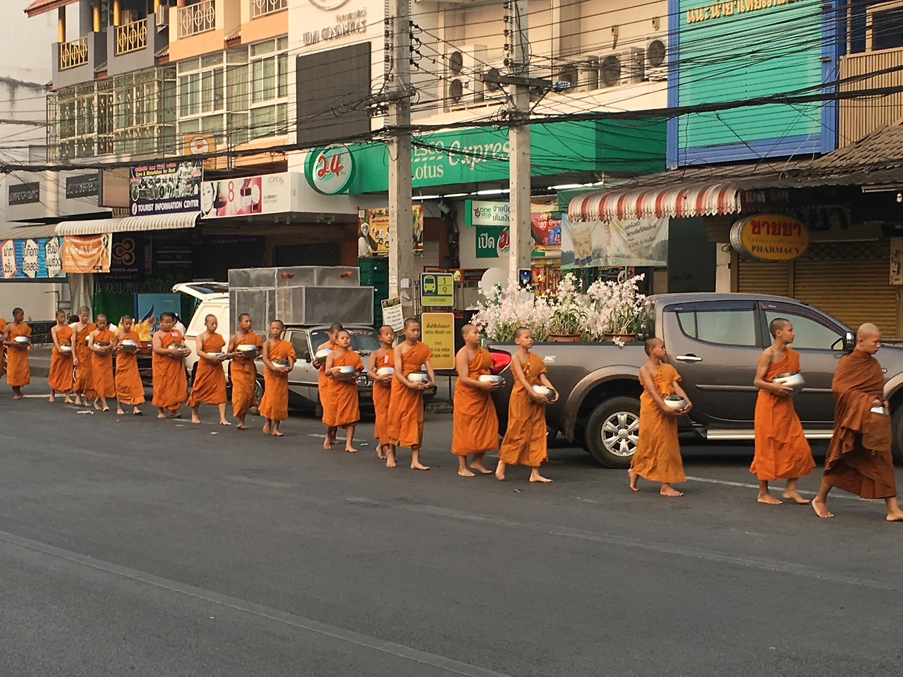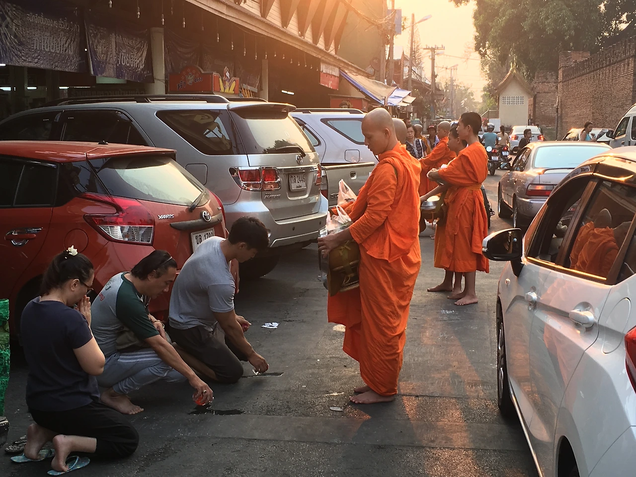 원래 탁발은 과거 인도 수행자들이 행하던 의식이었다. 이를 석가모니가 받아들여 불교에 도입되었다. 수행자에게는 음식을 빌어먹으면서 자만과 아집을 버리고 무소유의 원칙에 따라 살게끔 하는 수행방식이었고, 음식을 보시하는 속인들에겐 공덕을 쌓게 하는 의미가 있다. 우리나라는 부정적 인식을 우려해 1964년에 탁발 행위를 금지시킨 바 있다. 한국에선 책으로만 접하던 탁발을, 치앙마이에서 매일 같이 보게 되니 매우 신기했다.