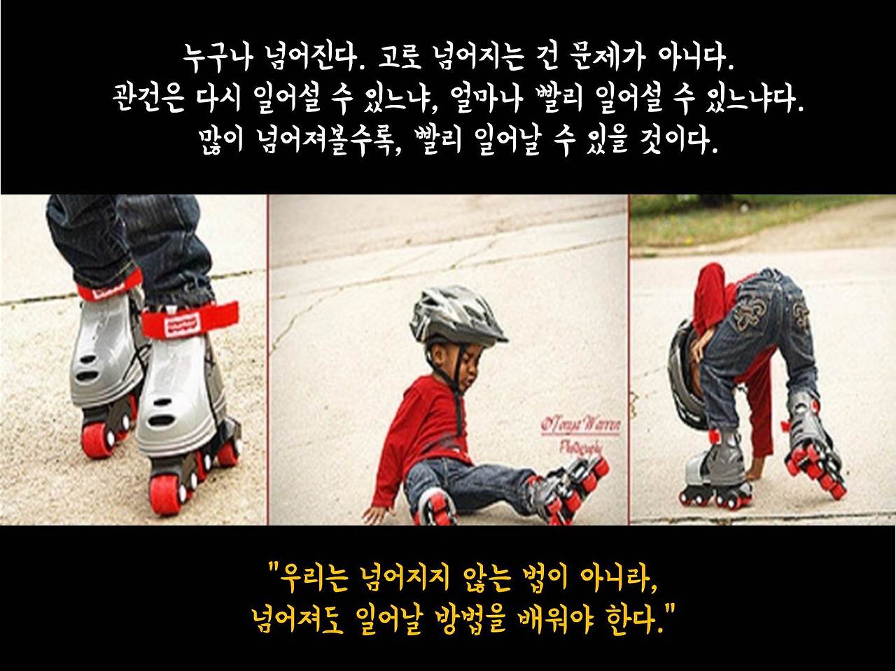관건은 넘어지지 않는 게 아니라, 넘어진 뒤 무얼 하느냐에 달린게 아닐까?