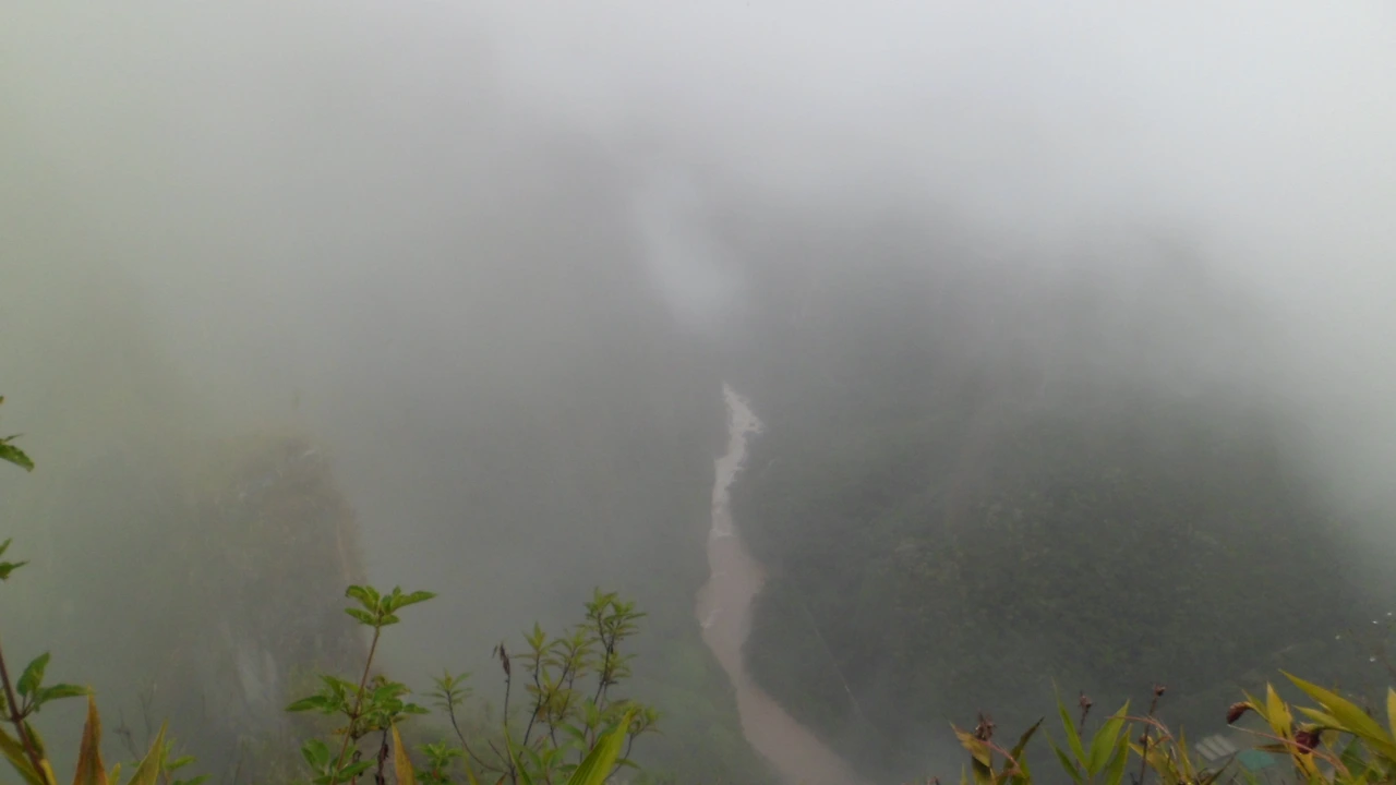 오르는 데 경사가 가팔랐다. 뚱뚱한 사람은 아예 지나가지도 못할 만큼 비좁은 곳도 있었고, 밧줄을 잡고 올라가야 하는 곳도 있었다. 난이도가 상당했다. 비는 그쳤지만 산 안개가 자욱해서 발 아래가 잘 보이지 않는다.