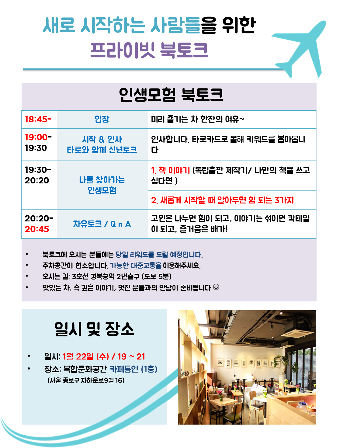 <인생모험> 책 1권과 음료 1잔이 제공됩니다.