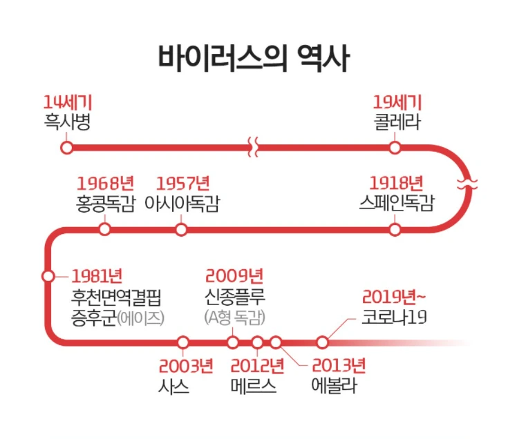 최근 100년간 바이러스성 질병은 대략 10여차례 창궐했다. 굵직한 건들은 다음과 같다.