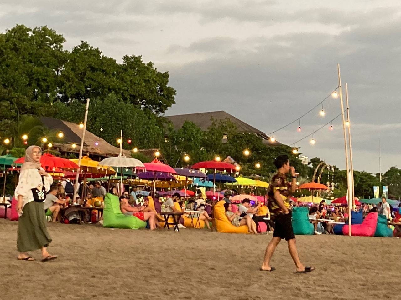 6시 15분이 가장 장관이고, 6시 30분 이후로는 캄캄해집니다. 발리는 우리나라처럼 해가 지고 서서히 어두워지는 게 아니라 해가 일단 지면 바로 캄캄해지는 게 특징입니다. 발리 해변가에는 비치클럽이 쭉 늘어서 있습니다. 비치클럽은 식사와 음료를 먹으며 놀 수 있는 곳입니다. 입장료를 4~6만원씩 내야하는 곳도 있고, 그냥 앉아서 맥주와 안주를 시켜서 먹으며 바다를 감상할 수도 있습니다. 대부분의 비치클럽이 라이브음악을 연주합니다. 음악을 들으며 석양을 감상하며 맥주 한잔 하는 것도 꽤 기분이 좋습니다..