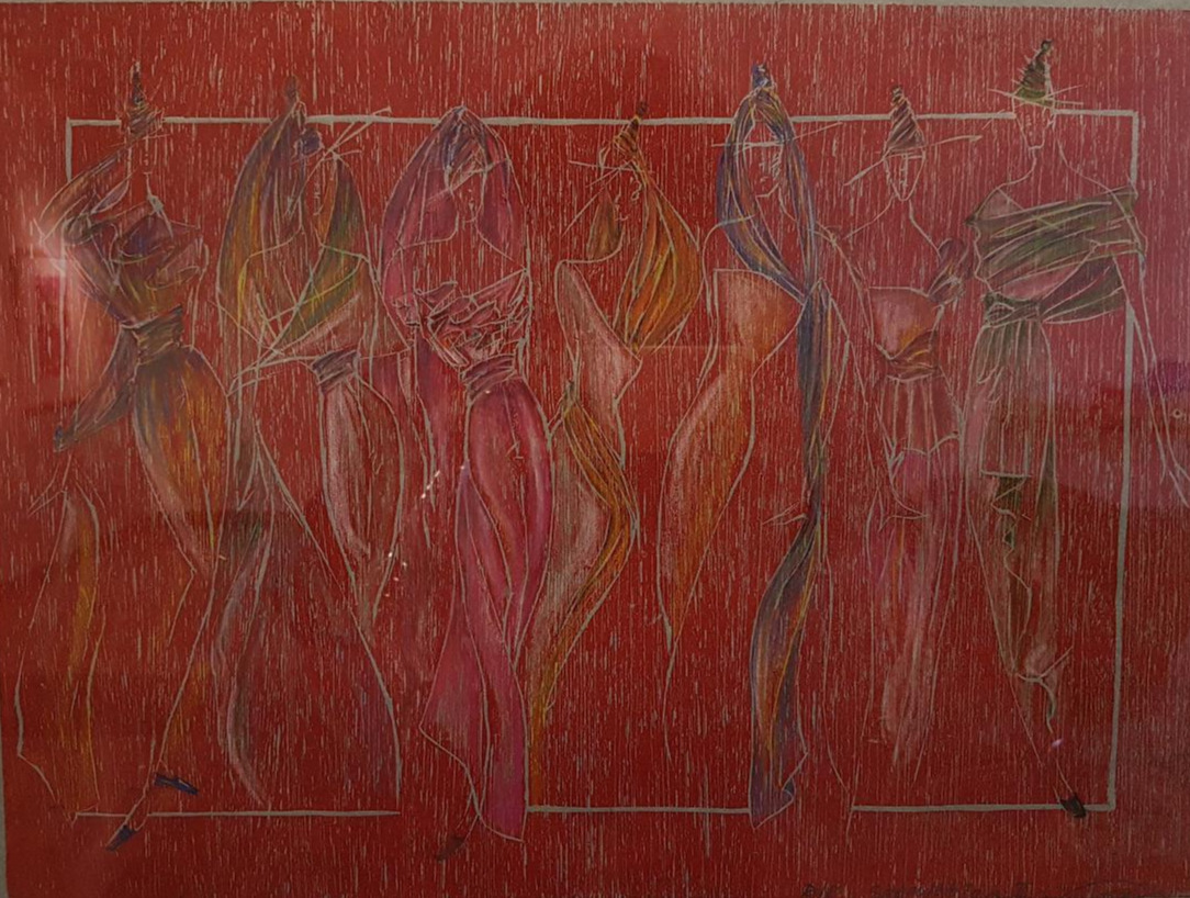 고희자 작가의 우주가 공유된 우주라면 박순천 작가의 우주는 독립된 우주다. 동굴 속에서 홀로 번개를 견디며 두려움을 느꼈을 고대인의 상상력을 옮겨 놓은 것 같다. 작품 속 사람들은 원색 속에서 지나치게 마른 모습을 하고 있다. Fashion Trend는 제목을 비꼬듯 날카로운 칼로 깎아낸 몸을 그렸다. 분명 우리는 이런 비유법을 배운 적 있다. 고등학교 국어 시간에 한 번쯤 들어봤을 '과장'이다. 그것이 내는 효과는 분명하다. 대상에 대한 경외거나 풍자다. 작품은 물론 후자처럼 보인다.