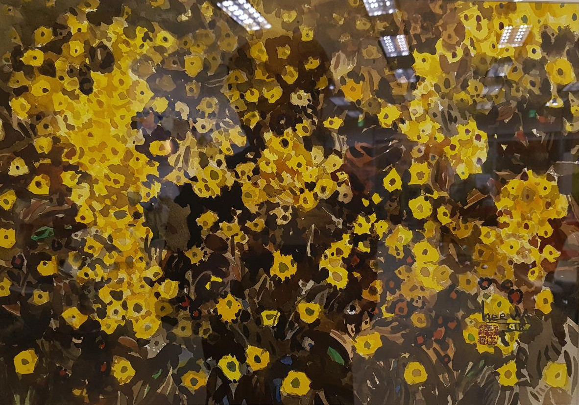 위의 작품과 제목은 비슷한 것을 가지고 둘을 연상시키는 기본적인 비유의 방법을 따른다. 마치 인류 전체의 큰 비유 중 하나인 '신화'와 비슷하다. 파랗고 노랗고 붉은 꽃이 피어있는 모습을 닮은 공작새, 노란 꽃이 넓게 펼쳐진 모습을 닮은 햇살은 지금의 우리뿐 아니라 먼 과거의 누구를 데려와도 이해할 수 있을 것이다.