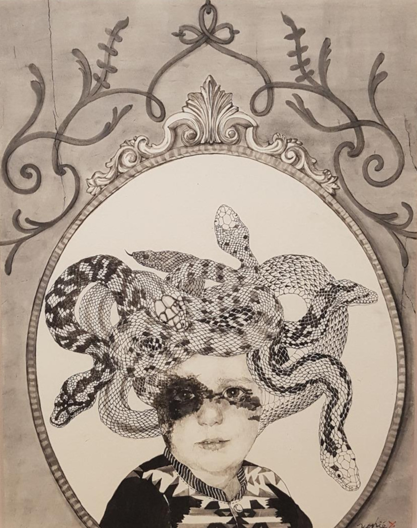'Euryale'은 우리가 잘 알고 있는 그리스 로마 신화에 등장한 메두사의 자매다. 메두사를 포함한 그리스 로마 신화의 이야기들은 이미 여러 예술 작품에서 표현되고 인용되고 변형되어 왔다. 가장 유명한 메두사가 아닌 그녀의 자매 에우리알레를 작품의 소재로 쓴 이유를 정확히 알 수는 없으나 중요한 것은 신화의 계속적인 전승과 변형에 있을 것이다.