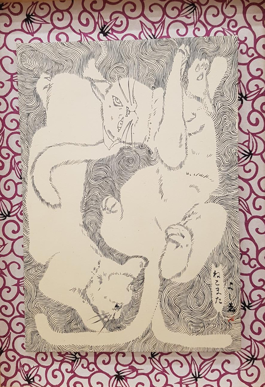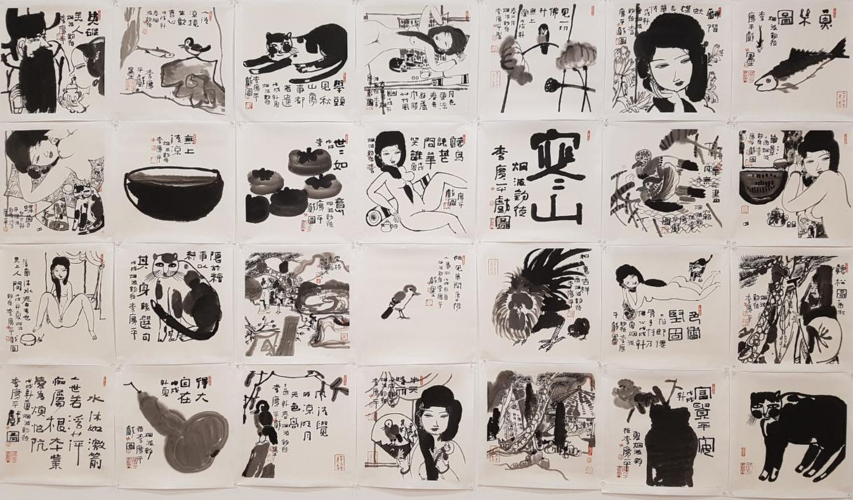 여러 개의 삽화가 나열된 Li Guangping의 작품은 마치 신윤복을 떠올리게 한다. 외설과 예술의 사이, 일상의 소재를 다루면서도 그 안에 존재하지만 드러나지 않는, 아니 드러내기 힘든 소재를 끄집어내는 기술이 좋다고 표현할 수밖에 없다. 고양이, 감, 그릇, 생선 사이사이에 나열된 여성의 나체는 단독적으로 존재했을 때 야하다고 생각될 수 있는 지점을 허물고 단순히 일상의 것으로 만들어 버린다.