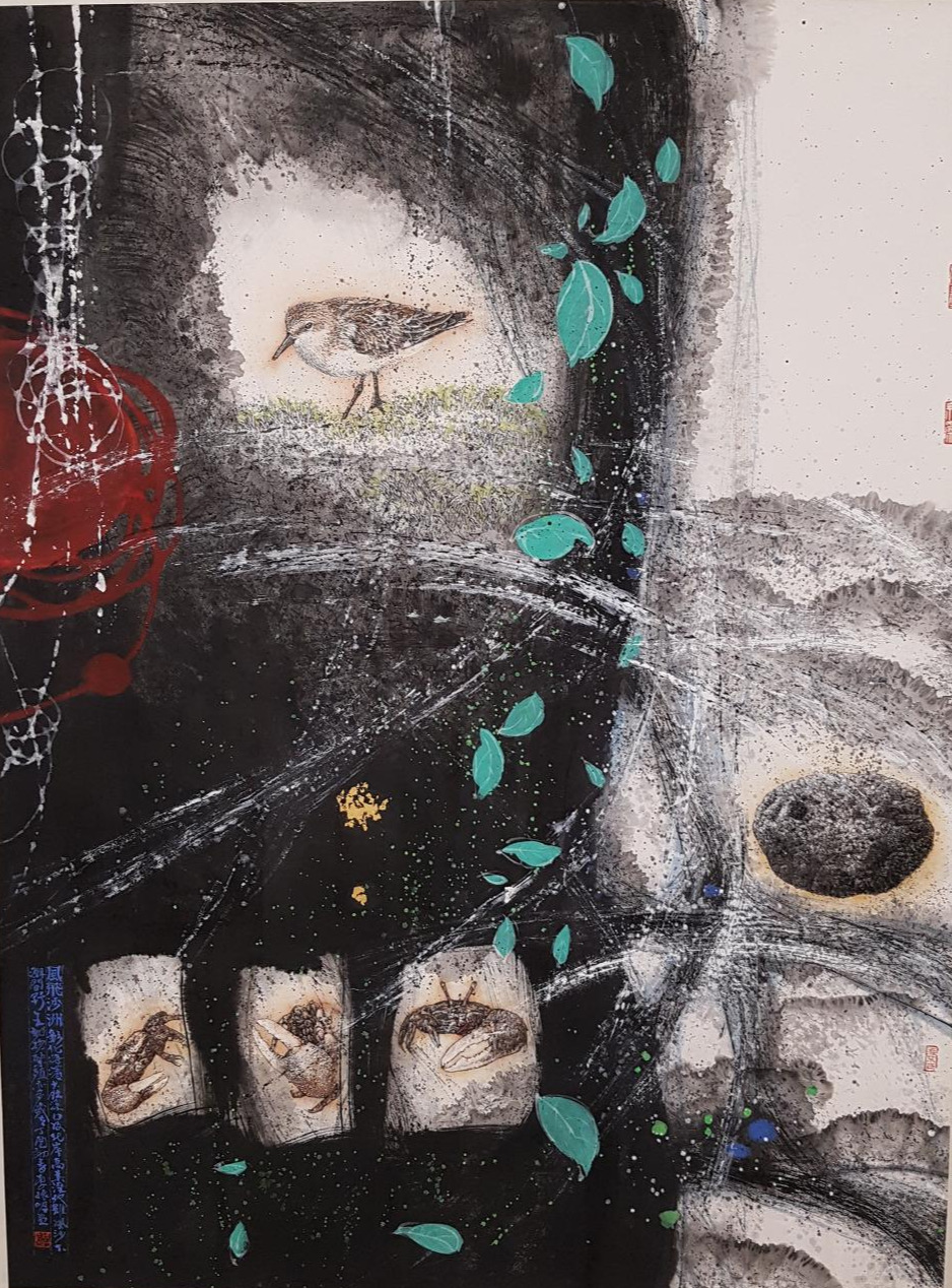 작품의 제목 'wind flying sandbar'는 작가의 상상력이 만들어낸 가상의 공간이고 그 안에 있는 새와 게 등은 분해되고 재배열되어 있다. 작품에 대해 설명하긴 애매해도 어떤 '느낌'인지 알 것만 같은 이 작품은 '나라'로만 묶어내자면 위의 작품과 같이 엮긴 힘들었다.
