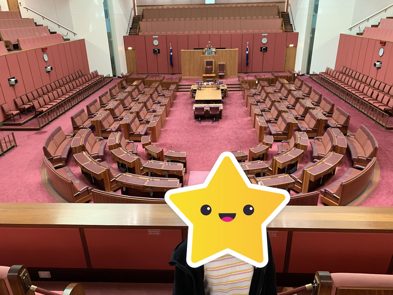 그리고 우리는 호주의 국회의사당으로 향하였다. 날씨가 좋아 국회의사당의 외관이 더 멋있어 보이는 것 같았다. 건물 안으로 들어가면 웅장한 기둥들이 받치고 있는 넓은 홀이 나오고 의원내각제를 채택하고 있는 호주의 상원, 하원 회의장도 볼 수 있으며 호주의 정치와 관련된 전시실도 둘러볼 수 있는데 건물규모가 생각보다 커서 둘러보는데 시간이 꽤 걸렸다. 큰아이는 학교에서 호주의 정치제도나 각 주와 주도에 대해 배웠다고 자기가 아는 것이 나오면 들떠서 우리에게 설명해주기도 했다. 실제로 시드니의 초등학교에서는고학년때 캔버라로 견학을 가기도 한다.