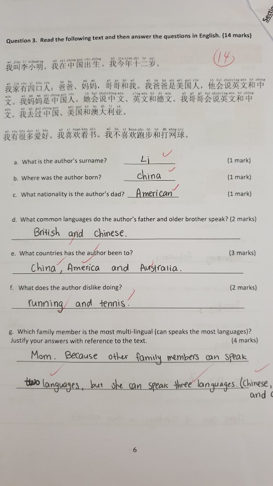 우리나라 시험과 다른 점은 OMR 답안지 같은 것을 작성하지 않는다는 점이었다. 5지선다식, 단답형 주관식 문제에 익숙한 나로서는 당연히 ‘선생님들이 일일이 채점하시나 보통일이 아닌데 열악하군.’ 하고 생각했는데, 시험 후 아이의 시험지를 보니 이 나라에 과연 OMR 답안지를 사용하는 시험이 있을까 싶은 교육문화적 충격을 받았다. 만일 우리나라라면 객관적인 평가가 이루어질 수 없다고 큰 반대에 부딪혔을 수도 있다.