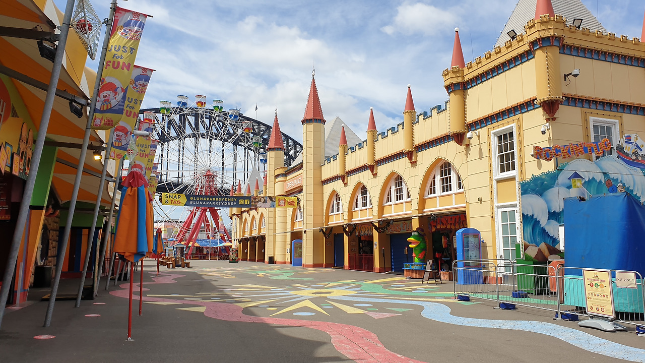 다음날은 시드니 시내에 있는 루나파크로 향하였다. 한국에 비하면 정말 시시한 놀이동산이지만 아이들은 그렇더라도 엄청 가고 싶어 했다. 루나파크 역시 인터넷 사전 예약이 필수이며 입장객 제한을 하고 있다. 예전에는 놀이기구 3개 타는데 얼마하는 식으로 티켓을 팔았는데 지금은 입장하면 무제한 놀이기구 탑승으로 바뀌어 티켓을 판매하고 있었고, 입장 시 가족의 인원수를 적은 배지를 옷에 달아준다. 우리 가족은 4명이니 4가 적힌 배지를 달고 우린 4명 이상의 사람들과 모이면 안 되는 것이다. 입장 시 안내원이 오늘 입장객이 정말 적으니 마스크도 안 해도 안전할 정도라고 이야기해 주었다. 몇 안 되는 놀이기구지만 나름 신나게 놀았다. 예를 들어 우리 아이들은 범버카를 연속으로 4~5번을 탔다. 루나파크를 나오기 전에 마지막으로 관람차를 타고 시드니 감상을 한다.
