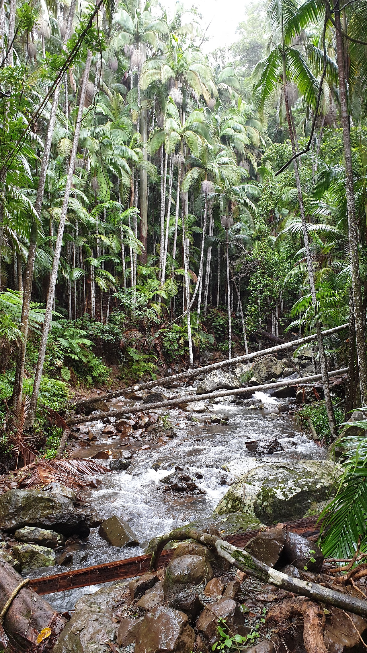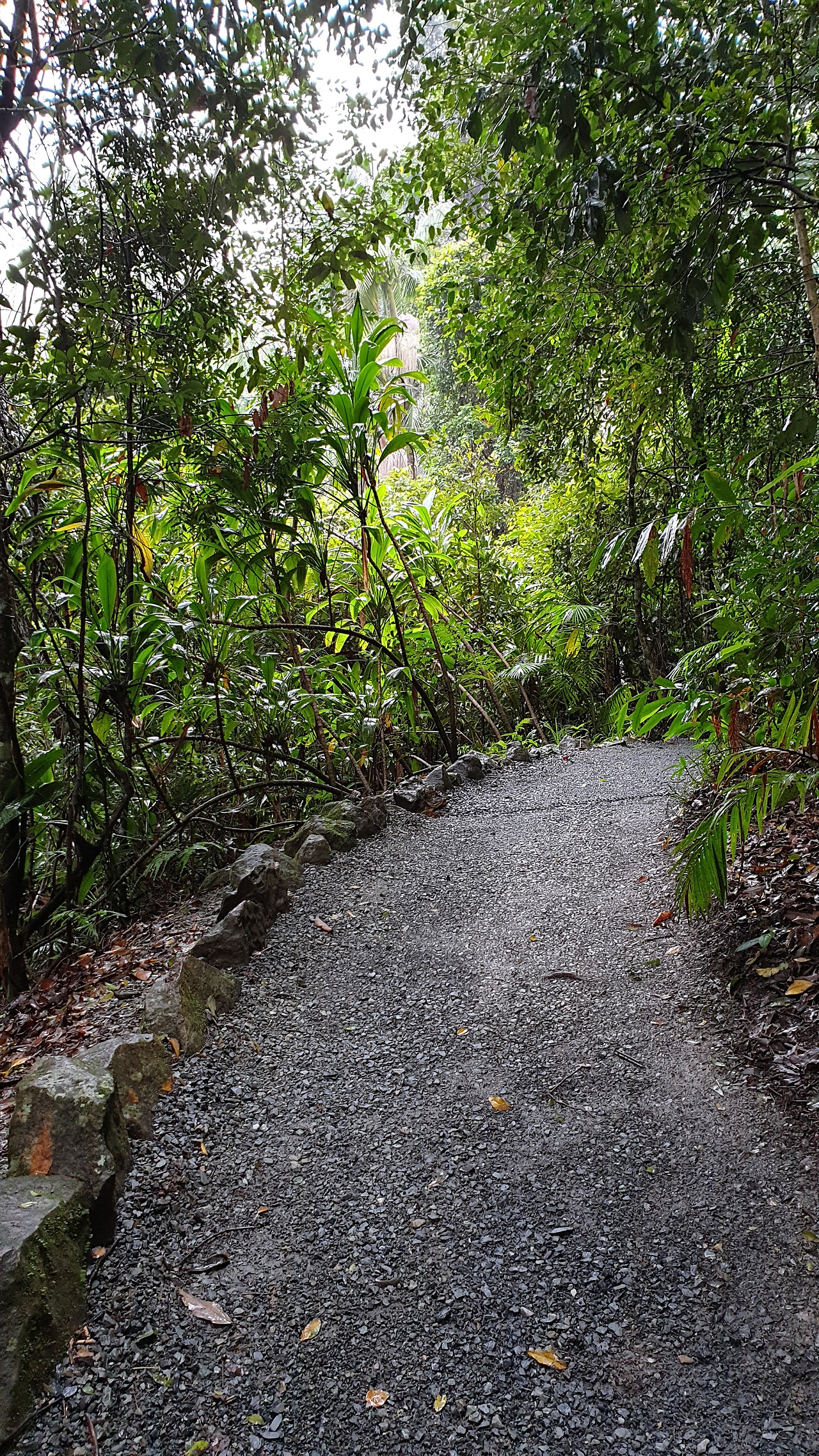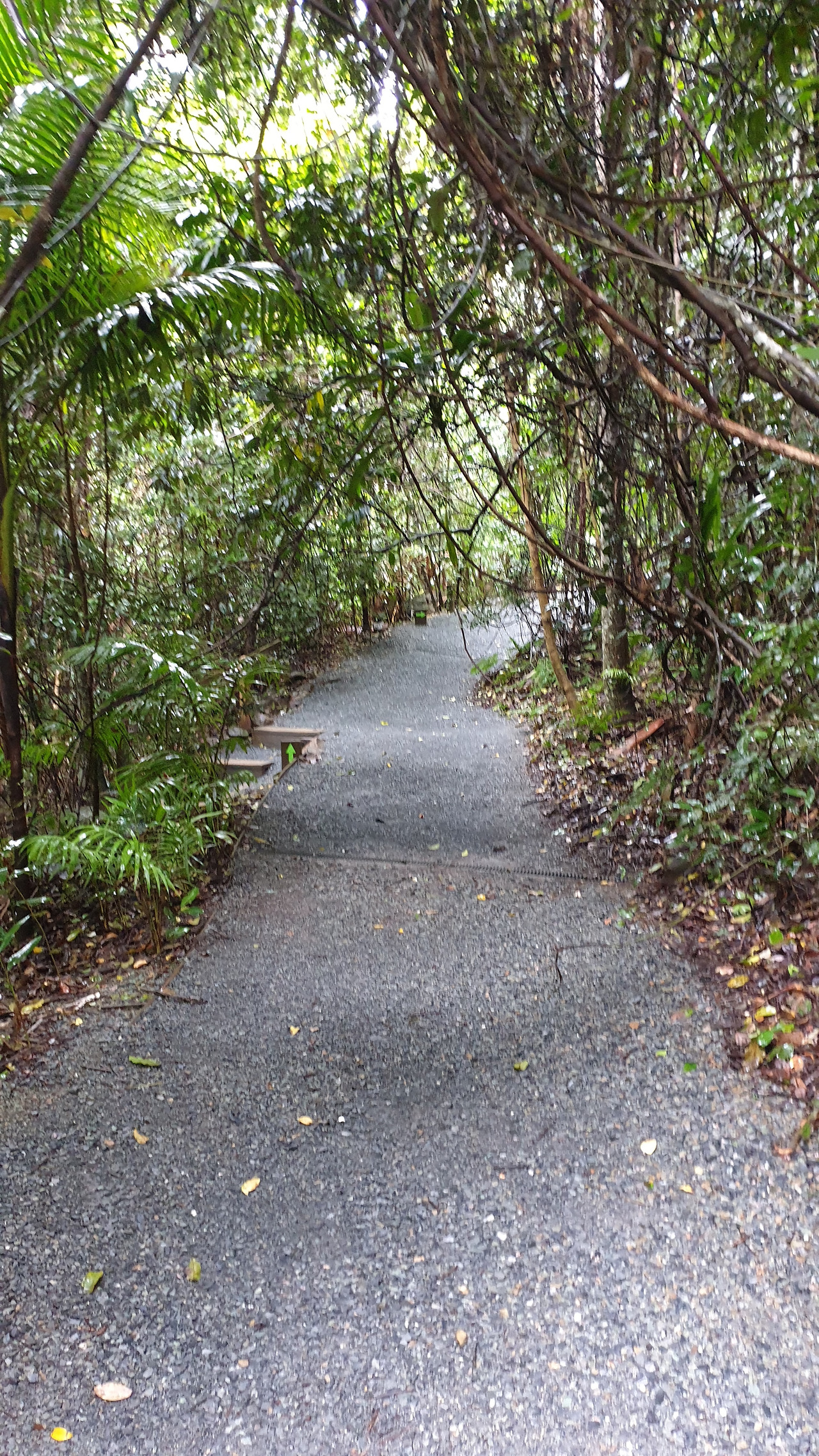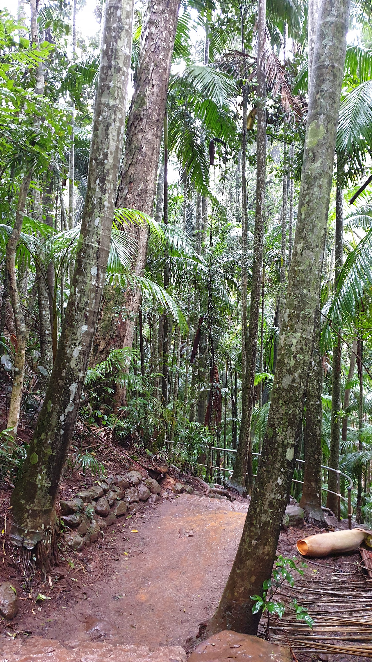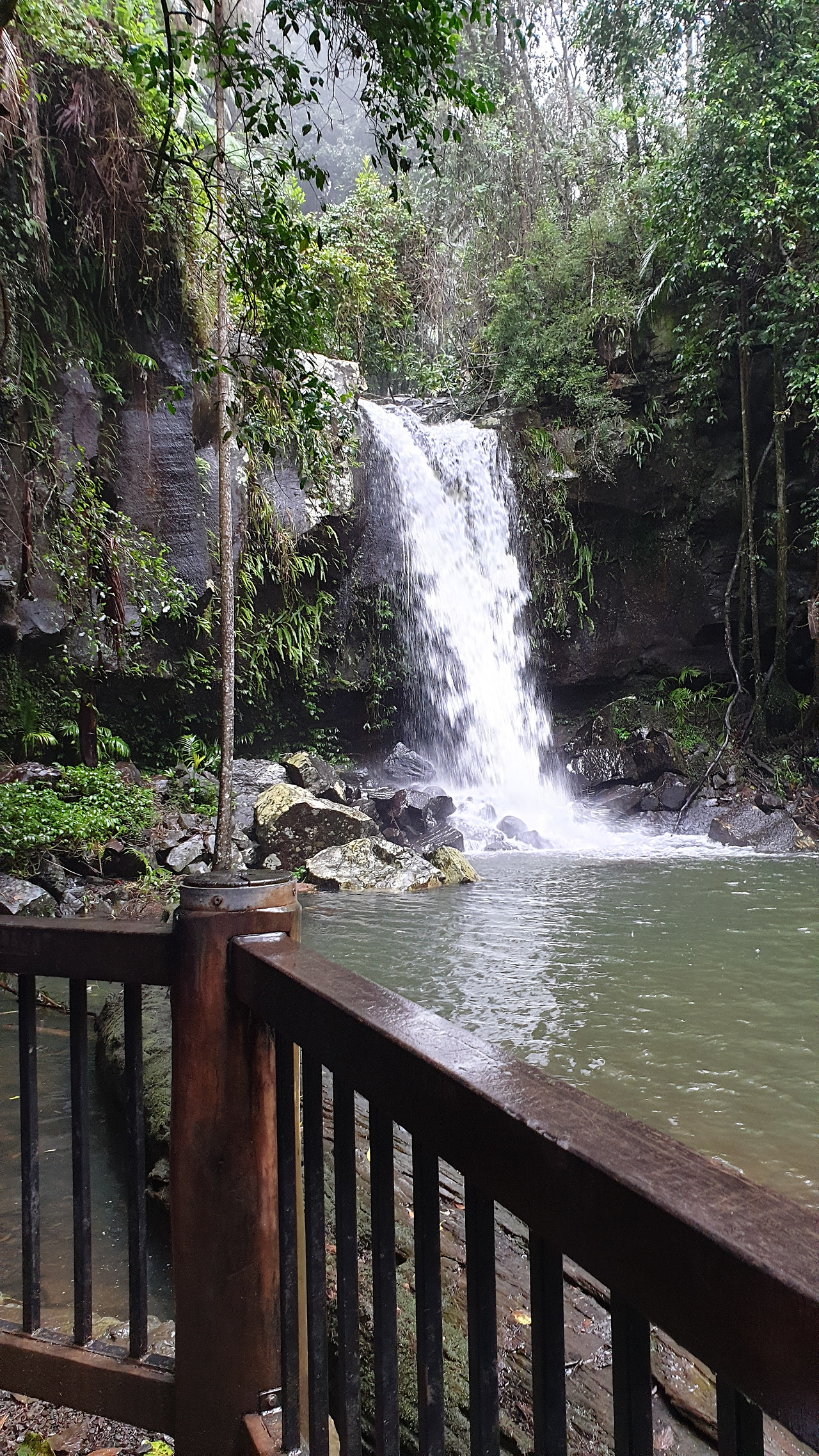 그리고 근처 폭포(Curtis Falls Track)를 볼 수 있는 곳으로 갔다. 아이들은 우산 쓰고 다니는 것에 이제 지겨워졌는 듯 이번에는 차에서 내리지 않겠다고 엄마 아빠만 다녀오라고 하였으나 우리 가족 여행에서 따로 행동은 용납되지 않는다. 이 폭포 트레킹 코스는 인위적으로 잘 관리된 스카이워크와 달리 자연 그대로이다 보니 군데군데 진흙탕과 웅덩이들이 많았고 비가 오는데도 불구하고 가족단위의 인파가 꽤 많았다. 입장료가 있는 스카이워크는 관광객도 거의 없었는데 말이다. 아이들은 이제 비에 젖기만 한 것이 아니라 진흙도 여기저기 튀고 신발(크록스를 신었기에 다행이긴 하지만)도 엉망이 되어 호텔로 돌아가자고 거의 울부짖고 있었다.