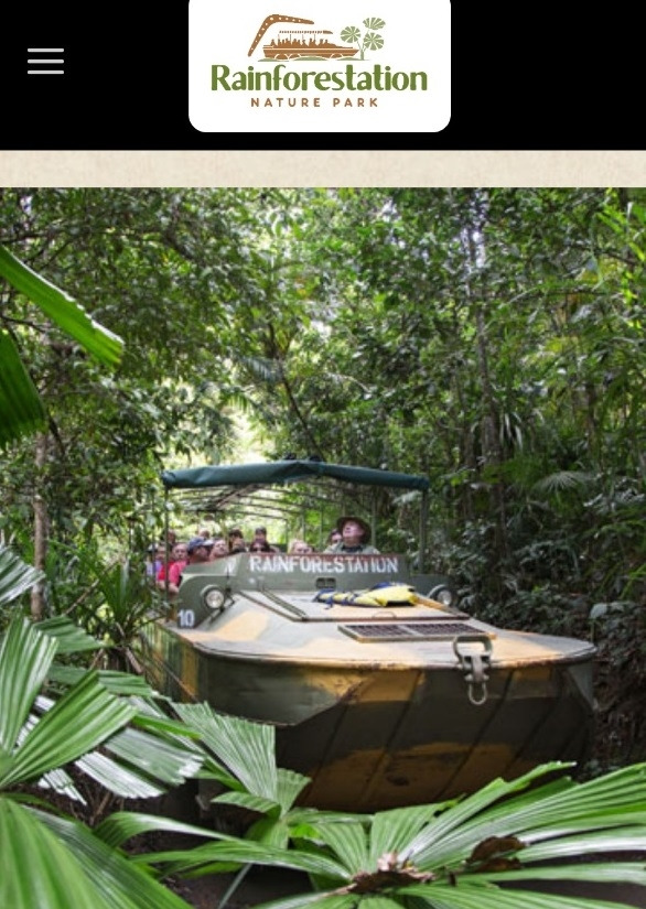 시내를 벗어나 꼬불꼬불 산길을 20분가량 올라가자 Rainforestation Nature Park가 나온다. 사실 이곳에서는 아미덕을 타고 열대우림과 호수를 구경하는 것만 하고 싶었지만, 패키지 상품이기에 우리는 시드니에도 있는 코알라와 캥거루를 열심히 관찰했다. 다른 점은 악어도 있었다는 거. 아미덕 타고 열대우림을 체험하는데 기사분이 정말 열심히 열대우림에 있는 식물들과 이것저것에 대해 설명을 많이 해주신다. 물론 영어로. 설명 시간과 아미덕의 속도는 반비례하기에 아이들은 점점 흥미를 잃어가고 지루해 하기 시작했다. 그래도 내릴 땐 아미덕 기사님이랑 사진도 찍고 관광객으로의 본분을 잊지 않는 깜찍한 우리 아이들이다.