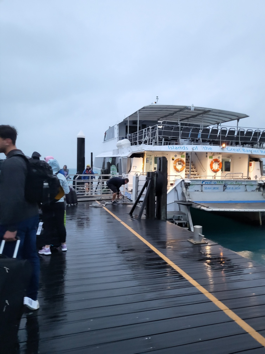 다음날 아침, J*항공사에서 대체 비행 편에 대한 연락이 왔다. 이곳에서 2시간가량 떨어진 메카이 공항에서 브리즈번으로 가는 오후 비행기를 이용하라고 한다. 그래서 브리즈번에서 시드니는 어떻게 가라는 거지? 우리는 이미 전날 해밀턴 아일랜드에서 출발하는 시드니행 캥거루 항공사 비행기 티켓을 구입한 상태여서 아침 일찍 다시 해밀턴 아일랜드로 되돌아 가는 배에 탑승했다. 우리와 같은 결정을 한 많은 승객들이 각자 이 충격의 밤을 보내고 선착장에 와서 서로 안부인사를 나누었다. 어젯밤 누군가에게 전화로 “J*가 우리를 f* 패리에 태워 dumping 했어”라며 울던 여자도 다시 만나 웃으며 안부를 물었다. 모두 힘든 시간을 같이 보낸 전우가 된 것 같았다.