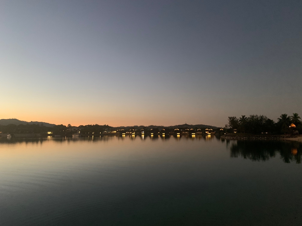 리조트 인피니티 풀 옆에 위치한 노천 레스토랑에 앉아 저 멀리 수평선으로 해가 지며 생기는 붉은 노을을 바라보고 있자니 또다시 현실적이지 않은 느낌이 들었다. 곧이어 칠흑같이 어두운 밤이 찾아오고 곳곳에 횃불을 켜주고 노래를 불러주니 휴가의 마지막 밤을 정말 잘 보내고 있다는 만족감이 들었다. 꿉꿉한 룸으로 들어가기 싫어서 느긋이 즐기다가 천천히 걸어서 룸을 향해 걷다 보니 카트 타고 지나가던 직원이 우리에게 먼저 아는척하며 방을 옮기자고 한다. 방이 없어서 기존 방보다 두배로 넓은 스위트로 옮겨주겠단다. 미안하니까 오늘 저녁 식사한 거 무료로 해주겠다며 룸서비스도 시켜 먹으란다. 아, 이렇게 또 갑자기 기분이 좋아지는 자본주의 노예. 이럴 줄 알았으면 아까 돈 아끼지 말고 더 좋은 거 먹을걸.