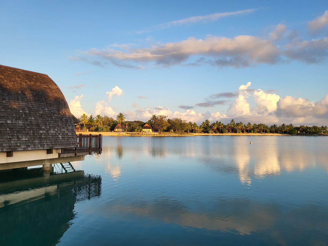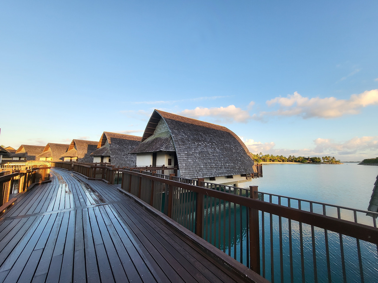 어느덧 우리는 메리어트 리조트에 도착하였고 햇살이 좋은 맑은 날씨이다 보니 또 새 리조트가 어찌나 좋아 보이 던 지, 다시 한번 J*항공사가 원망스러워졌다. 두 리조트는 느낌이 많이 다른데 인터콘티넨탈은 숙소들이 해변가에 옹기종기 모여있어 수영장이나 식당 시설들을 걸어서 편리하게 이용할 수 있고, 메리어트는 인공 라군을 둘러싸고 뜨문뜨문 방갈로들이 있고 방갈로 앞의 해변을 프라이빗하게 이용할 수 있다. 그런데 너무 부지가 넓어 시설들을 이용하려면 계속 카트를 불러야 해서(물론 못 걸어갈 정도는 아니지만 햇살이 너무 뜨거워서 힘들다) 수영장을 한 번밖에 이용하지 못했다.