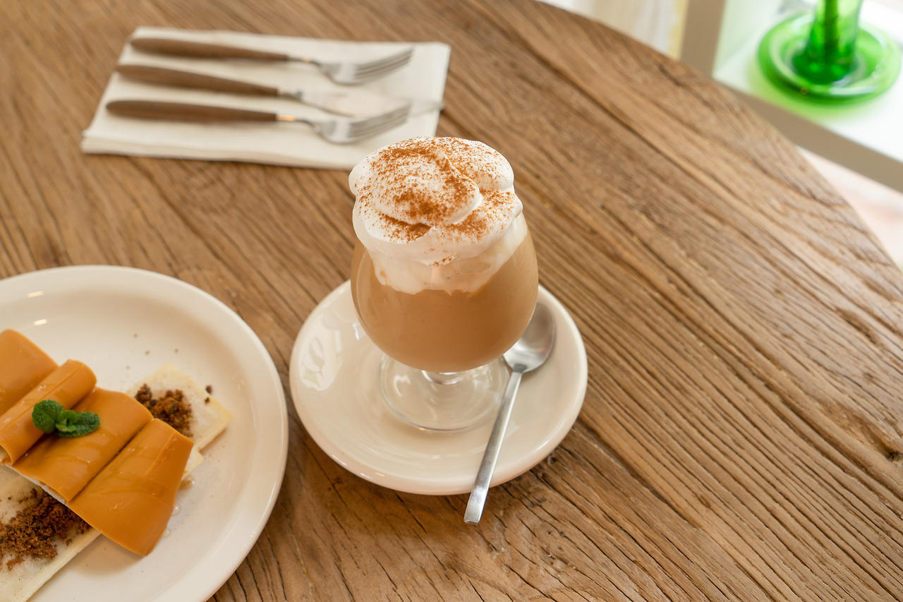 이런 메뉴 설명에 누가 감동하지 않을 수 있을까. 오늘 가장 제주스러운 '라이스 비스킷'을 나에게 선사한다는데 말이다. 자리에 앉아 사진을 찍고, 공간을 가만히 바라보는 시간을 가져본다. 메뉴가 나오는 시간이 빠른 편은 아닌데, 주인장은 그 시간을 채워줄 공간으로 바로 옆 소품샵을 권한다. 작은 돌판을 따라 옆으로 돌아가면 빈티지 소품샵이 있다. 메뉴를 기다리는 시간보다는 카페 다음 코스로 두어 찬찬히 둘러보아도 좋을 곳이다. 메뉴와 함께 주인장의 설명이 이어진다. 왜 라이스 비스킷을 만들게 되었는지, 이 디저트가 마을과 어떤 연관이 있는지, 클라우디 월평은 어떻게 먹는 것이 좋은지에 관한 이야기들. 마치 미술관 큐레이터를 만난 것 같은 느낌이었다. 쫀득쫀득한 식감의 디저트와 꾸덕한 크림 음료는 이름과 설명에 잘 어울렸다. 결론적으로 단 것 + 단 것의 조합이라, 살짝 아쉬움이 있었지만. 메뉴에 대한 다정한 설명과 맛은 참으로 근사했다.