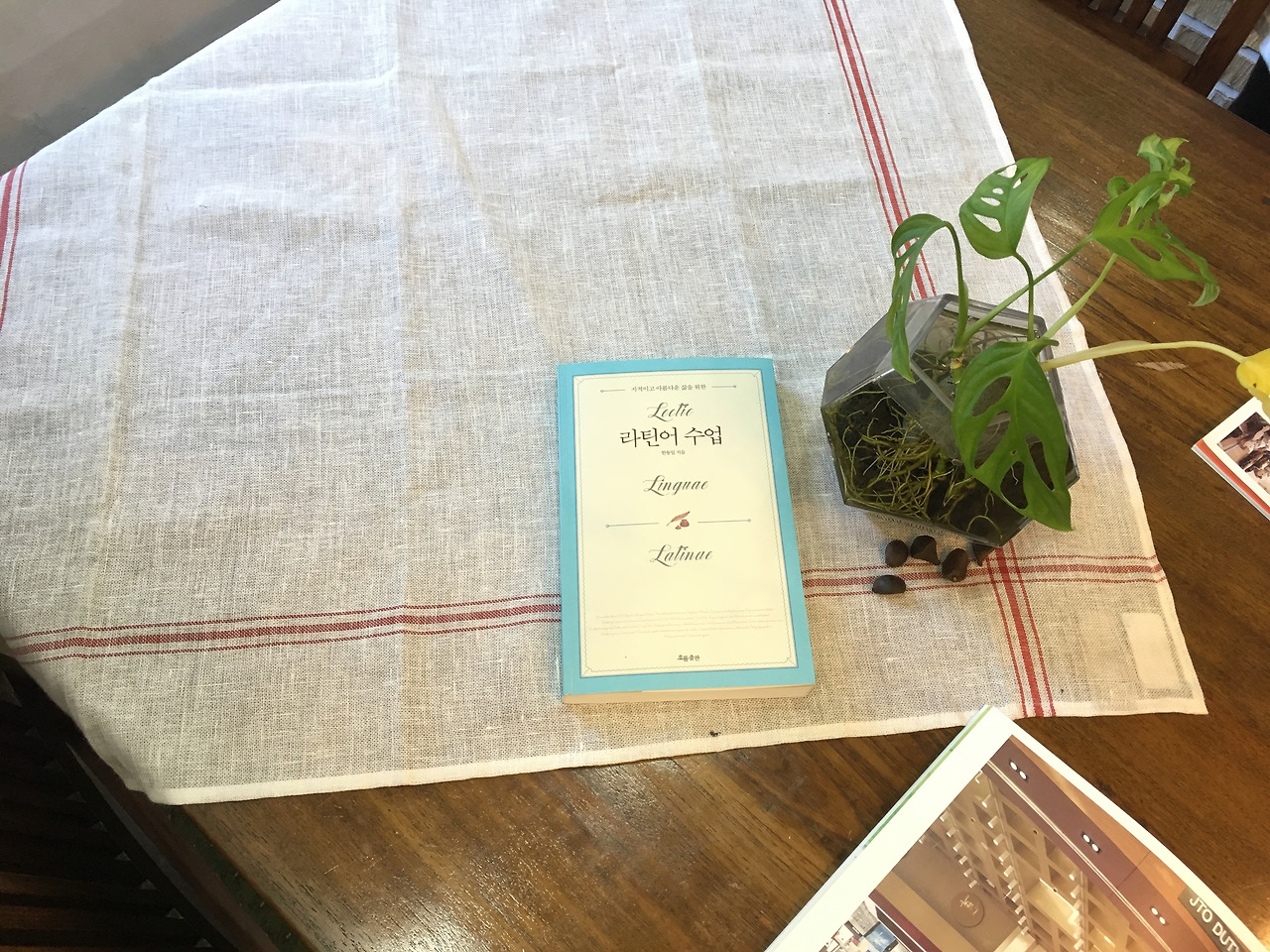 내부에는 몇 안되는 테이블과 천연염색작가의 작품이 전시돼 있다. 아담한 크기에 비해 구석구석 볼 것이 많아 구경하는 재미가 꽤 쏠쏠한 편. 전체적으로 차분하고 조용한 공간이라 보통은 홀로 여행을 온 여행객과 소규모 인원으로 채워지는 것 같다.