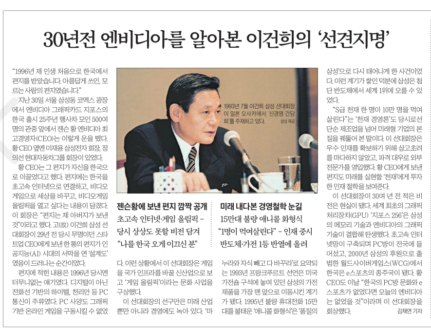 젠슨 황 CEO는 “30년 전 받은 편지를 아직도 간직하고 있다”며