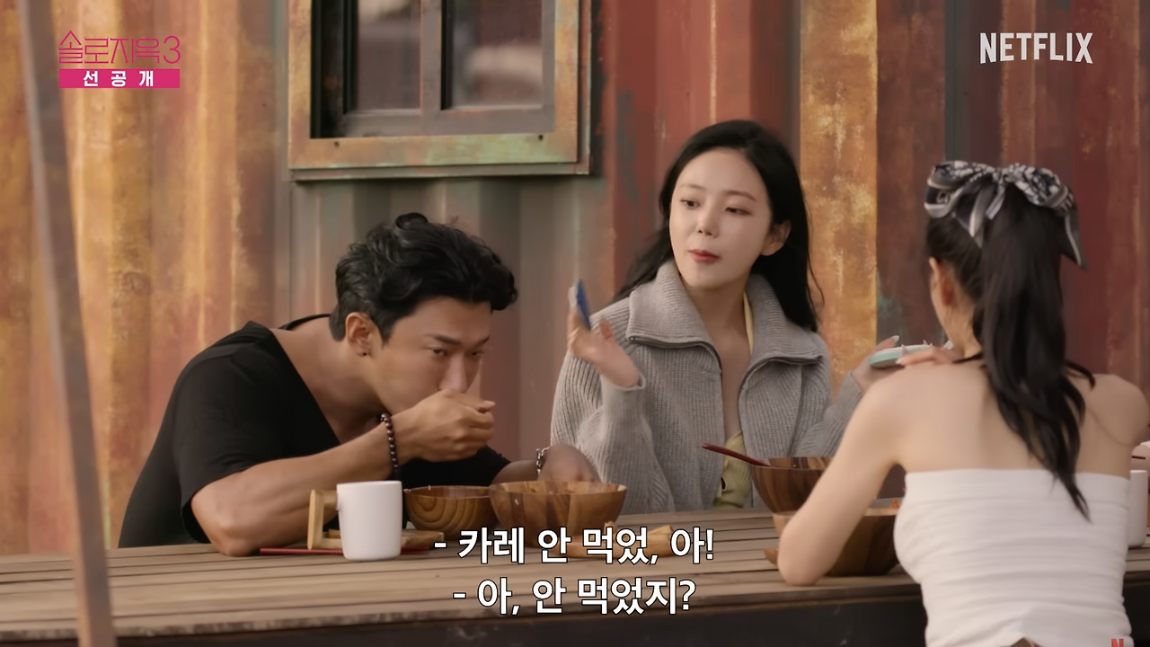 앞서서도 얘기했듯 내가 <솔로지옥3>를 추천하는 이유 0번은 빠른 서사다. 짧은 시간 내에 쾌락 호르몬인 도파민을 자극하는 숏폼 콘텐츠가 넘치는 시대라 시청자들은 기다림에 박하다. 특히 내가 보고 싶어 선택한 게 아닌 콘텐츠는 최대한 빨리 재미를 주지 못하면 버려진다. 원래 관심 없던 사람들을 끌어들여 시청층을 확장하려면 먼저 콘텐츠가 간결해야 한다. 하지만 짧다고 다 재밌는 것은 아니다. 짧은 내용 안에 재미포인트가 있어야 하고, 또 그 포인트가 온전히 전달되도록 표현돼야 한다. 간결하다는 것은 짧으면서도 짜임새가 있어야 하는 것이다. <솔로지옥3>는 간결하다. 앞서서 <솔로지옥3>가 어떻게 이야기를 빨리 진행시키는지를 봤으니, 지금부터는 그 속에 어떤 재미가 있는지 얘기해 보려고 한다.