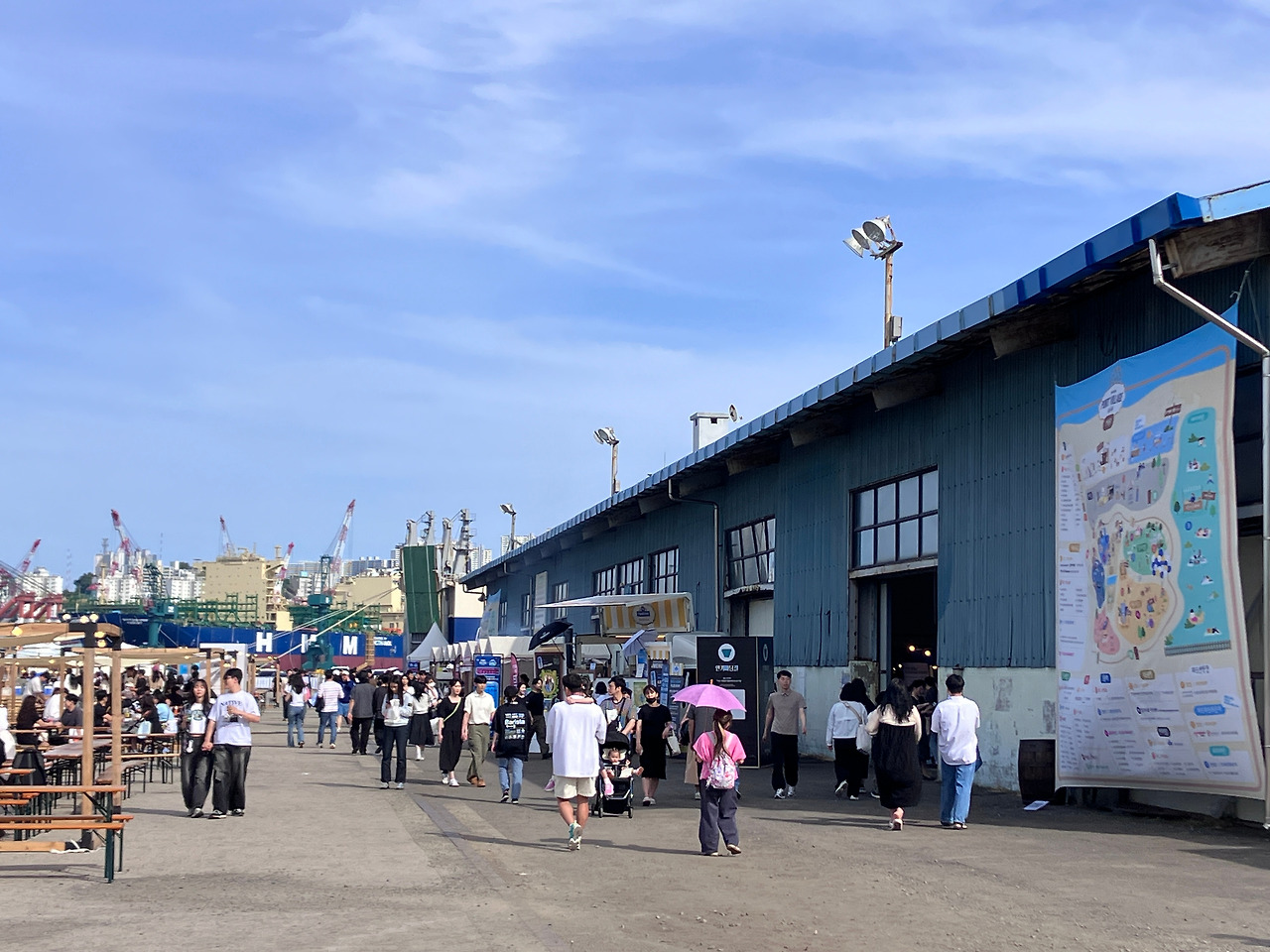 저는 평일 낮에 방문했음에도 이미 부산항 제1부두는 축제에 방문한 사람들로 인산인해를 이뤘습니다. 부산 중구는 5일 간 포트빌리지 부산에 방문한 방문객 수를 약 10만 명으로 추산했는데요. 가까운 도심 한가운데서 유럽 감성을 즐길 수 있다는 게 많은 관광객을 사로잡지 않았나 생각됩니다.