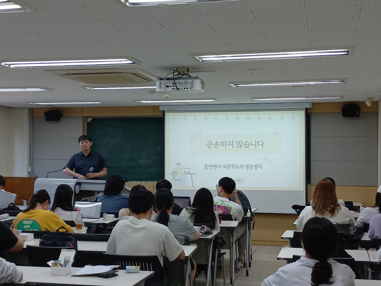 작년 10월, 울산광역시청 사업 자문회의를 통해 오랜만에 대학 선생님(내가 졸업한 모교 학부는 교수님이라는 호칭을 쓰지 않는다)과 재회했다. 그때 드렸던 내 명함이 손을 타고 타서 한 선배님으로부터 연락이 오기에 이르렀다. 자신을 95학번이라고 밝힌(선배님인지, 선생님인지는 애매하지만) 선배님은 국문주 기간 동안 졸업 선배의 특강을 열 계획인데, 시청에서 나를 만난 선생님의 추천으로 연락했다고 하셨다. 국문주는 한글날 전후로 약 3일 간 진행하는 국어국문학과의 축제로, 나름대로 꾸준히 진행 중인 학과 내 권위 있는 행사였다. 한창 커리어를 쌓는 시기였기에 거절할 이유가 없었고, 그렇게 약 5년 만에 학교에 가게 됐다.
