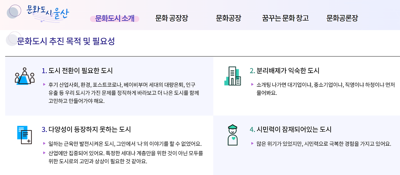 그래서 간담회나 라운드테이블에 참여할 때 늘 '기획자에게 확실한 보상이 없다면 그들의 탈울산이 가속화되고 결국 울산 문화인프라는 계속 제자리일 것'이라고 역설하곤 했다. 실제로 나 또한 돈 벌려면 울산보다 인프라가 큰 지역에서 일해야 하나 (아직도) 고민 중이니까. 냉정하게 아직 크게 변하는 건 없어 보이나… 이번 문화도시 선정을 계기로 약간이나마 업계의 개혁이 있길 바라는 수밖에.