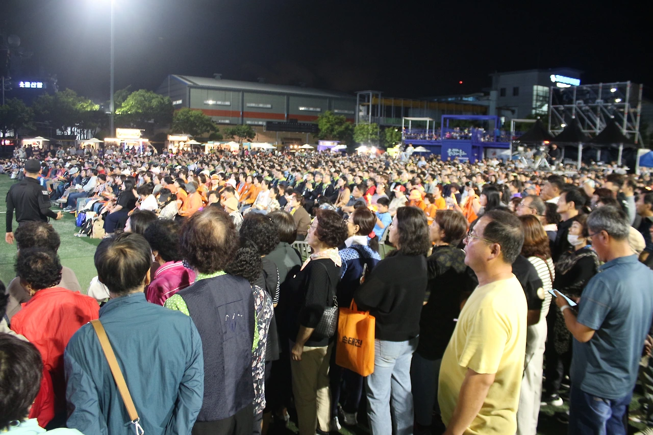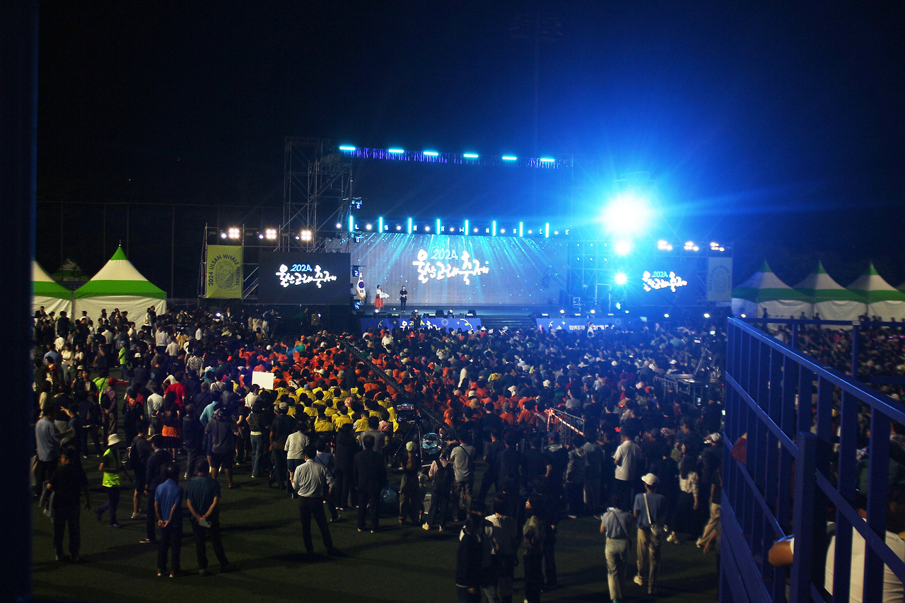 개막식이 있었던 26일 저녁은 본격적으로 식이 시작하기 전임에도 많은 인파들이 장생포 고래문화특구에 몰려들었습니다. 장생포다목적구장에 마련된 스테이지에서는 식전 공연이 한창 이뤄지고 있었는데요. 2층짜리 콘테이너 구조물까지 조성해 관객들의 시야를 넓혀주기까지 했습니다.