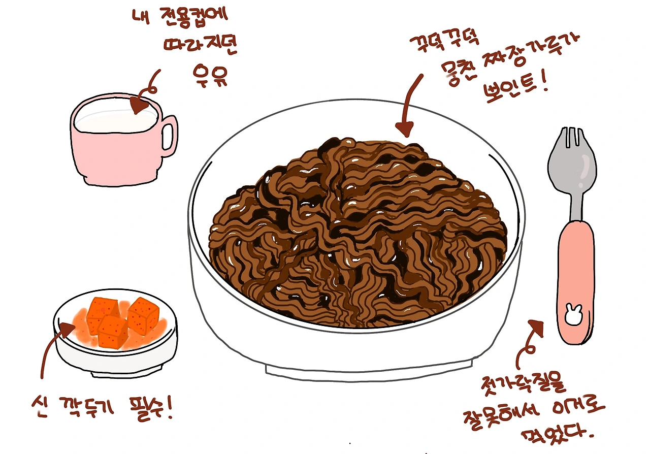 그리고 아빠는 짜파게티를 차려줄때 그 옆에 항상 흰 우유를 컵에 담아 주셨다. 먹다가 목마르면 먹으라고 했다.