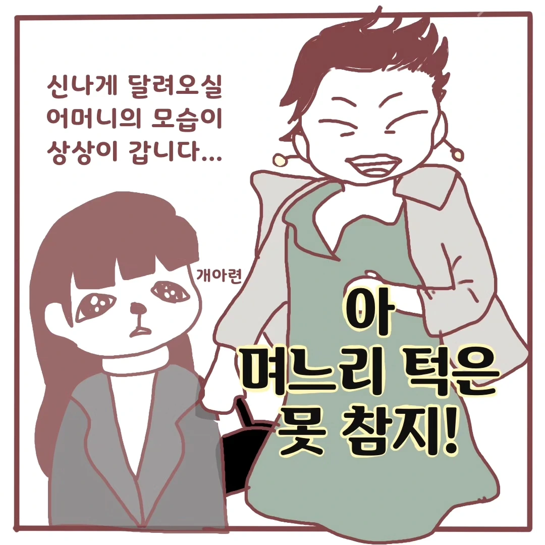 시집살이의 경험을 글과 그림으로 풀어내며 스트레스도 함께 풀어내고 있습니다. 저의 이야기가 누군가에게는 쉴수 있는 웃음이 되고, 저를 더 단단하게 만들어 줄 계기가 되길 소망하며