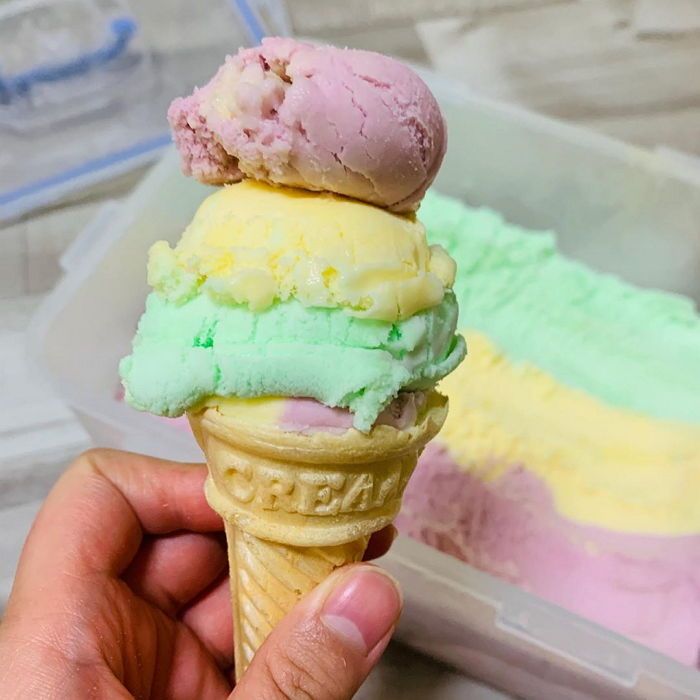 뷔페 음식을 어느정도 먹고난 초딩이라면 꼭 먹어줘야했던 삼색아이스크림. 개인적으로 나는 보라색 맛을 제일 좋아했다. 이 아이스크림을 제대로 먹으려면 뷔페 아이스크림 냉장고에서 거의 빠질듯이 허리를 굽히고 스쿱질을 해야했다.