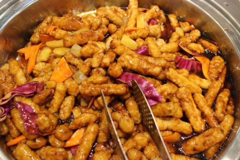 지금도 좋아라하는 뷔페 탕수육! 요게요게 참 유치한(?)맛이 있다. 고기는 많이 안들어갔지만 튀김옷이 탕수에 푹 절어서 말랑말랑하면서 달달했다. 크기도 일정해서 초등학생이었던 내가 먹기 좋았다. 요새는 크림새우,라조육, 깐풍기 등 뷔페에도 다양한 중화요리들이 생겼지만 난 역시 탕수육이 제일 좋다.