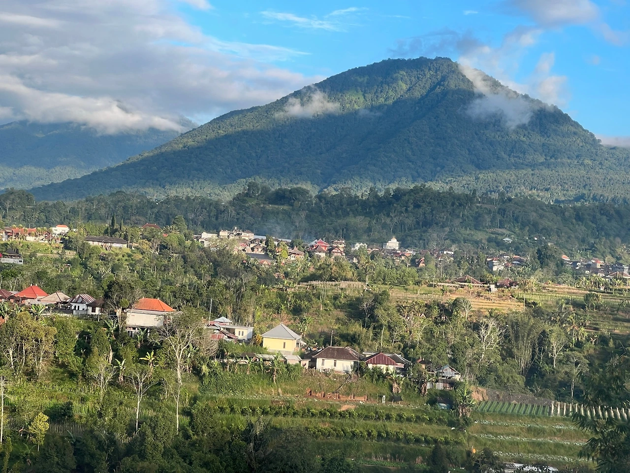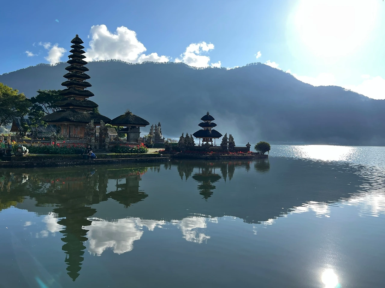 발리에서의 첫날 아침. 클룩으로 예약한 택시를 타고 발리 북부의 울룬 다누 브라탄 사원으로 향했다. 발리는 꽤 큰 섬이고 휴양지이기도 하기 때문에 보통 여유를 가지고 일정을 계획한다. 하지만 나는 인도네시아 곳곳을 보고 싶었기 때문에 발리에서 그리 오랜 시간을 머물고자 하지 않았고 다양한 장소들을 다니고 싶었기에 일정을 조금 타이트하게 계획했다. (발리가 좋았던 여행지이기도 해서, 다음에 여유를 갖고 오래 다녀와보고 싶기도 한 장소이다.) 꾸벅꾸벅 졸면서 이동했는데, 그 와중에 본 발리의 아침 풍경은 정말 멋졌다. 날씨도 맑았고, 멀리 보이는 화산 풍경과 일출 풍경도 좋았다. 우리는 우붓에서 북쪽으로 1시간 반 정도 달려 발리에서 가장 유명한 사원이자 인도네시아 전체에서도 유명한 울룬 다누 브라탄 사원에 도착했다. 고도 1,000미터 이상의 고지대에 있어서 열대지방임에도 날씨가 선선했다.