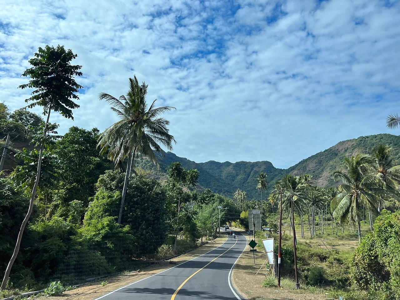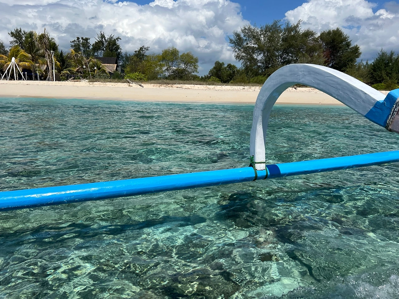 다음 날, 빠당바이 항구로 향했는데, 가는 길의 풍경이 꽤 괜찮았다. 항구에서는 배를 2~3시간 정도 타고 이웃한 섬인 롬복 바로 옆에 있는 길리 섬으로 건너갔다. Gili Islands는 길리 트라왕안, 길리 메노, 길리 아이르 3개의 섬이 있다. 그 중 길리 트라왕안은 <윤식당>에도 나왔던 번화한 분위기의 섬이고, 길리 메노는 조금 더 조용하고 휴양을 하기 좋은 섬이라고 한다. 우리는 길리 메노로 향했는데 접안이 안 되어 페리에서 작은 바지선을 타고 섬에 있는 나무 데크로 가서 입도하였다. 길리 섬은 바다 색깔이 정말 예술이었던 곳으로, 동남아에서 가장 마음에 드는 장소 중 하나이다.