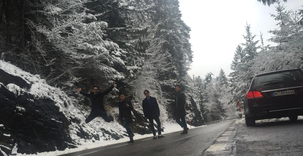 밤 사이 내린 눈으로 인해 도로 곳곳이 하얗게 물들어 있었다. 지난날의 앙상한 가지는 폭신한 하얀 옷을 입고 있었고, 들판, 도로, 돌을 가리지 않고 하얀 눈은 곳곳에 쌓여 있었다. 다행히 길이 얼어있지는 않아 걱정 없이 운전할 수 있었고 우리를 제외하고는 지나다니는 차량도 없어 여유롭게 다닐 수 있었다. 마침 친구가 선곡한 핑클의 'White'를 들으니 겨울왕국과 같은 디즈니의 동화 세상에 들어온 듯한 기분이 들었다. 정말 이 상황에 기가 막히게 잘 맞는 노래였다. 이 순간을 그냥 놓치기는 아쉬워 잠시 차를 세웠고 차가 지나다니지 않는 도로에 서서 우리의 모습과 풍경을 사진에 담았다.